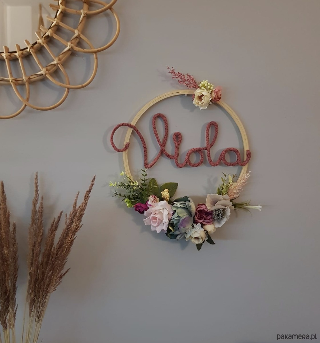Delikatna i subtelna ozdoba wykonana na okrągłym bambusowym tamborku - oryginalny pomysł na prezent.