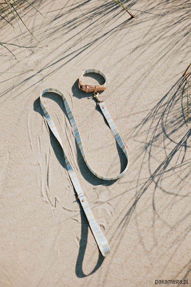 Ręcznie wykonana obroża z naszym autorskim wzorem. Wykonana z bardzo wytrzymałej taśmy nośnej wyprodukowanej z włókien poliestrowych pochodzących z recyklingu, łączona z paskami ze skóry naturalnej. Jest miękka, lekka oraz odporna na przetarcia i zerwania.