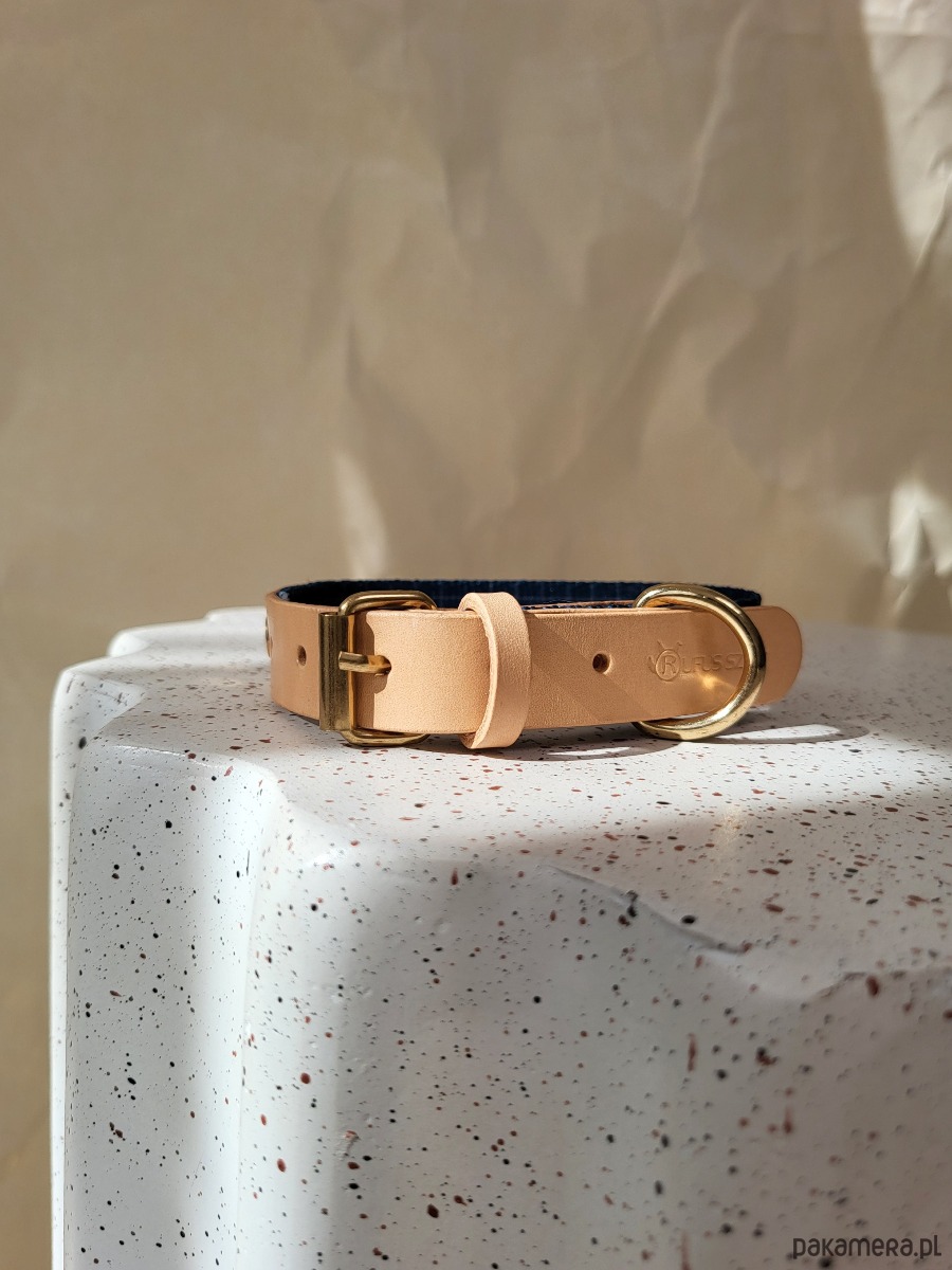 Obroża Łączona Royal Blue / Nude Leather 2 cm