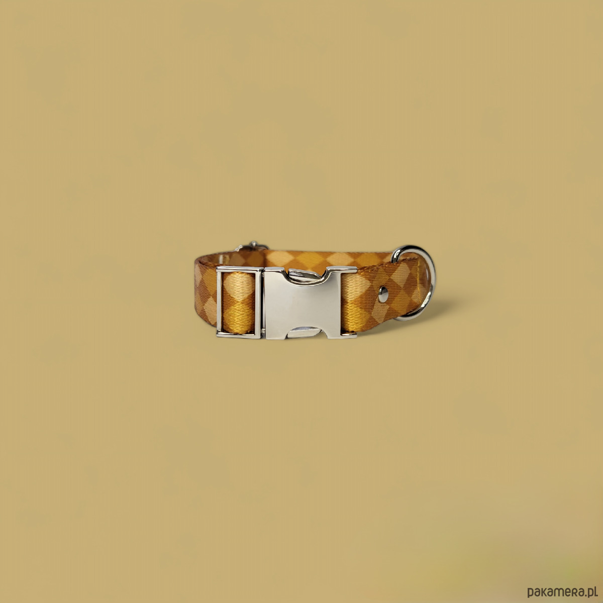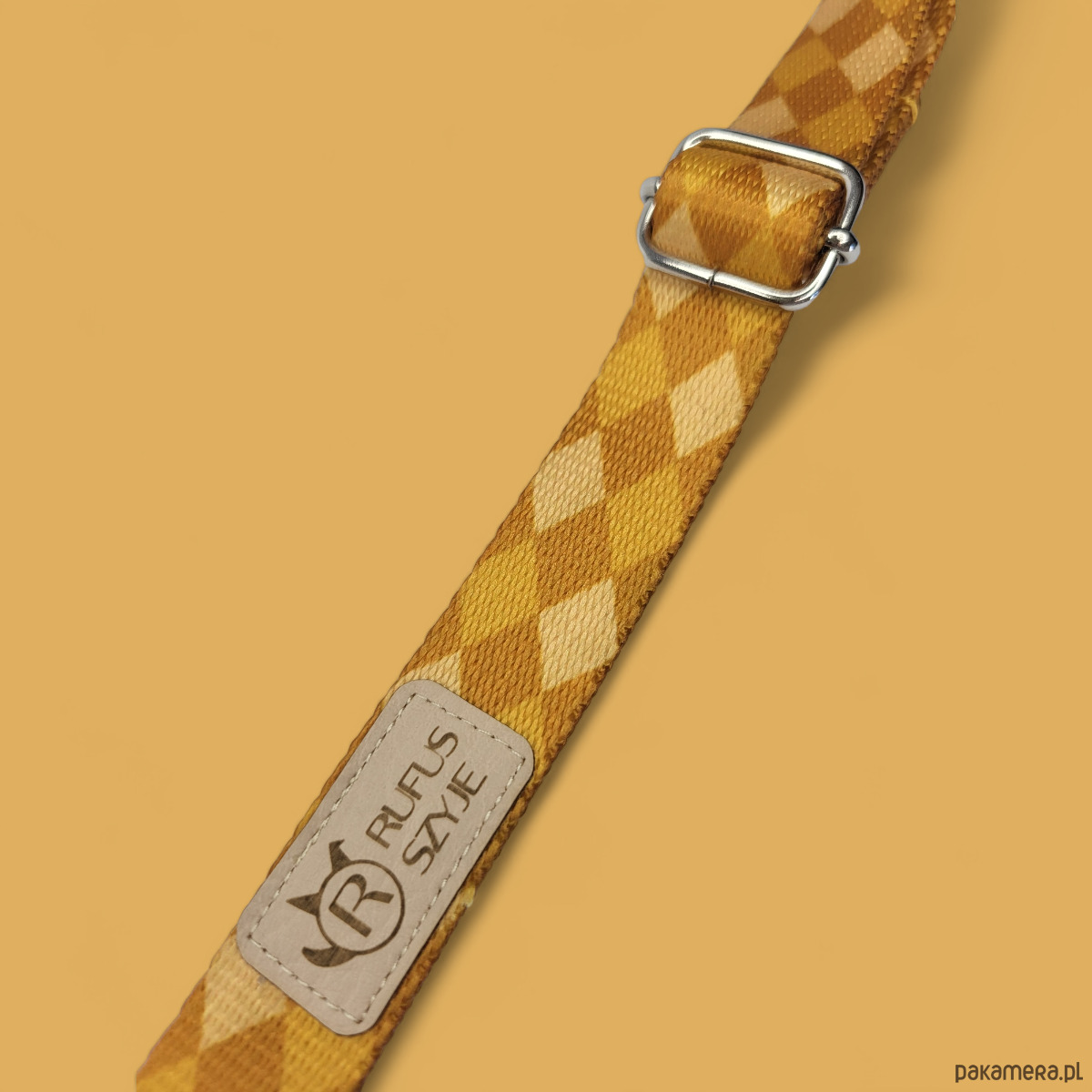 Ręcznie wykonana obroża z naszym autorskim wzorem. Wykonana z bardzo wytrzymałej taśmy nośnej wyprodukowanej z włókien poliestrowych pochodzących z recyklingu. Jest miękka, lekka oraz odporna na przetarcia i zerwania.