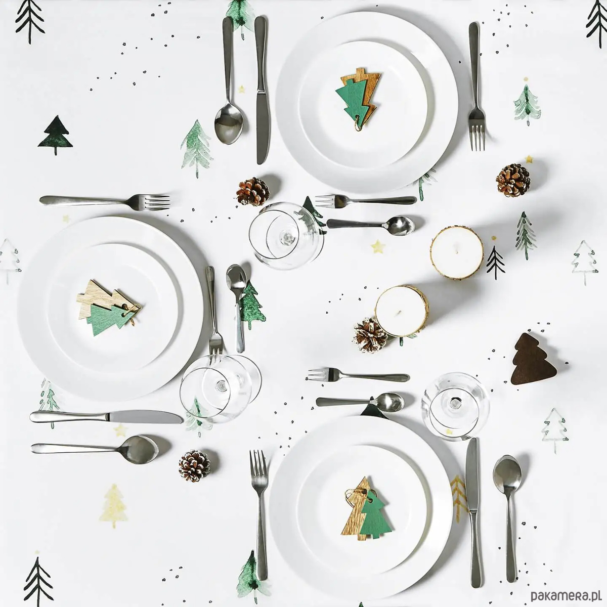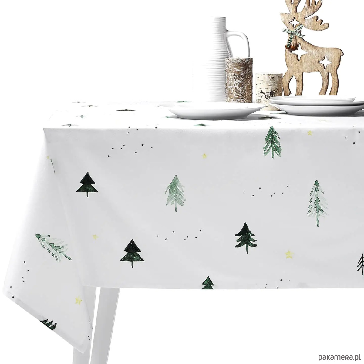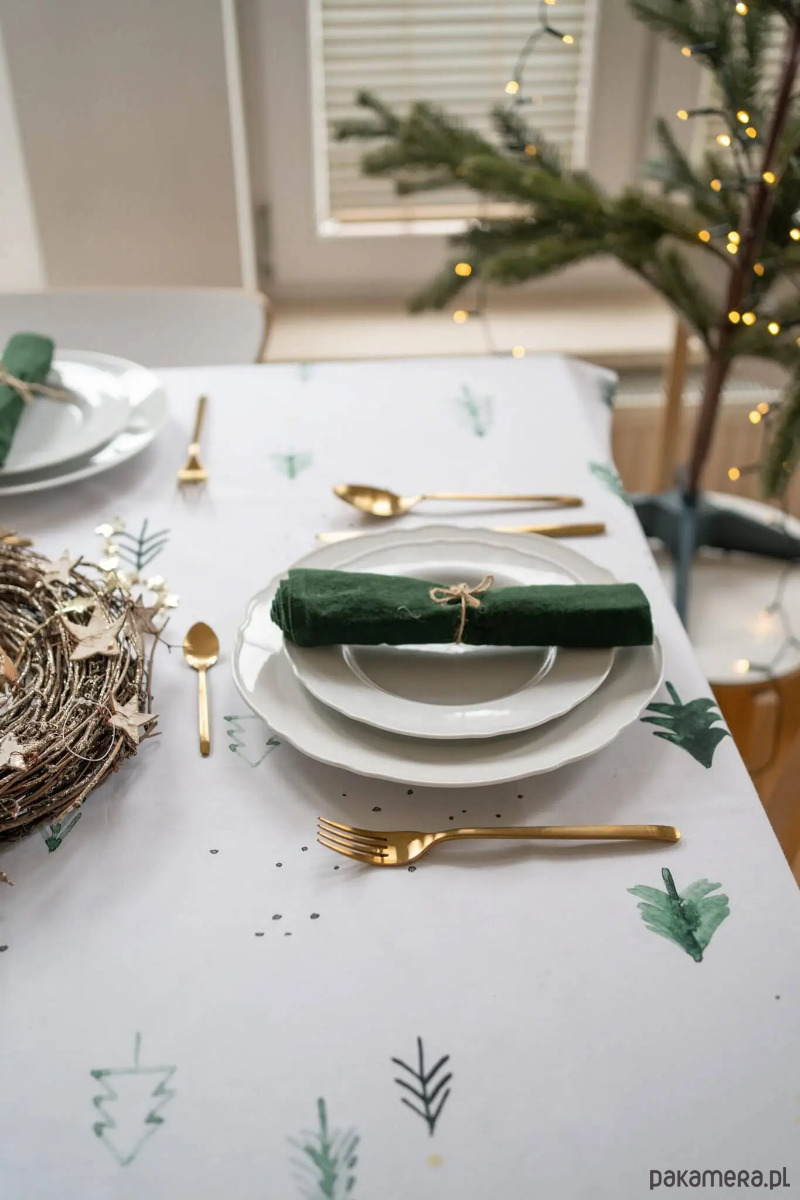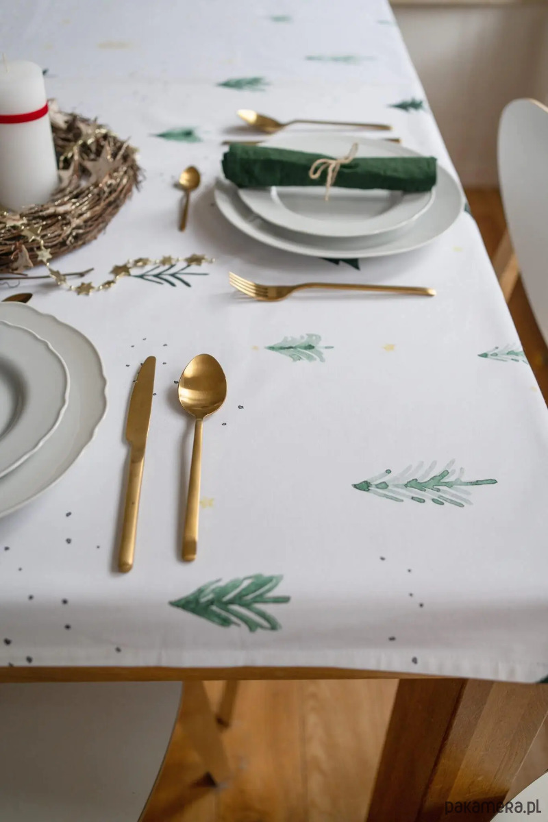 Świąteczny obrus w choinki to sposób na zachwycającą zimową dekorację stołu. Obrus sprawdzi się nie tylko na Święta Bożego Narodzenia, ale też przy każdej innej okazji. Neutralny motyw choinek rewelacyjnie wygląda w zestawieniu zarówno z klasyczną, jak też z nowoczesną zastawą stołową. Do obrusu możesz dobrać bieżnik z tym samym wzorem.