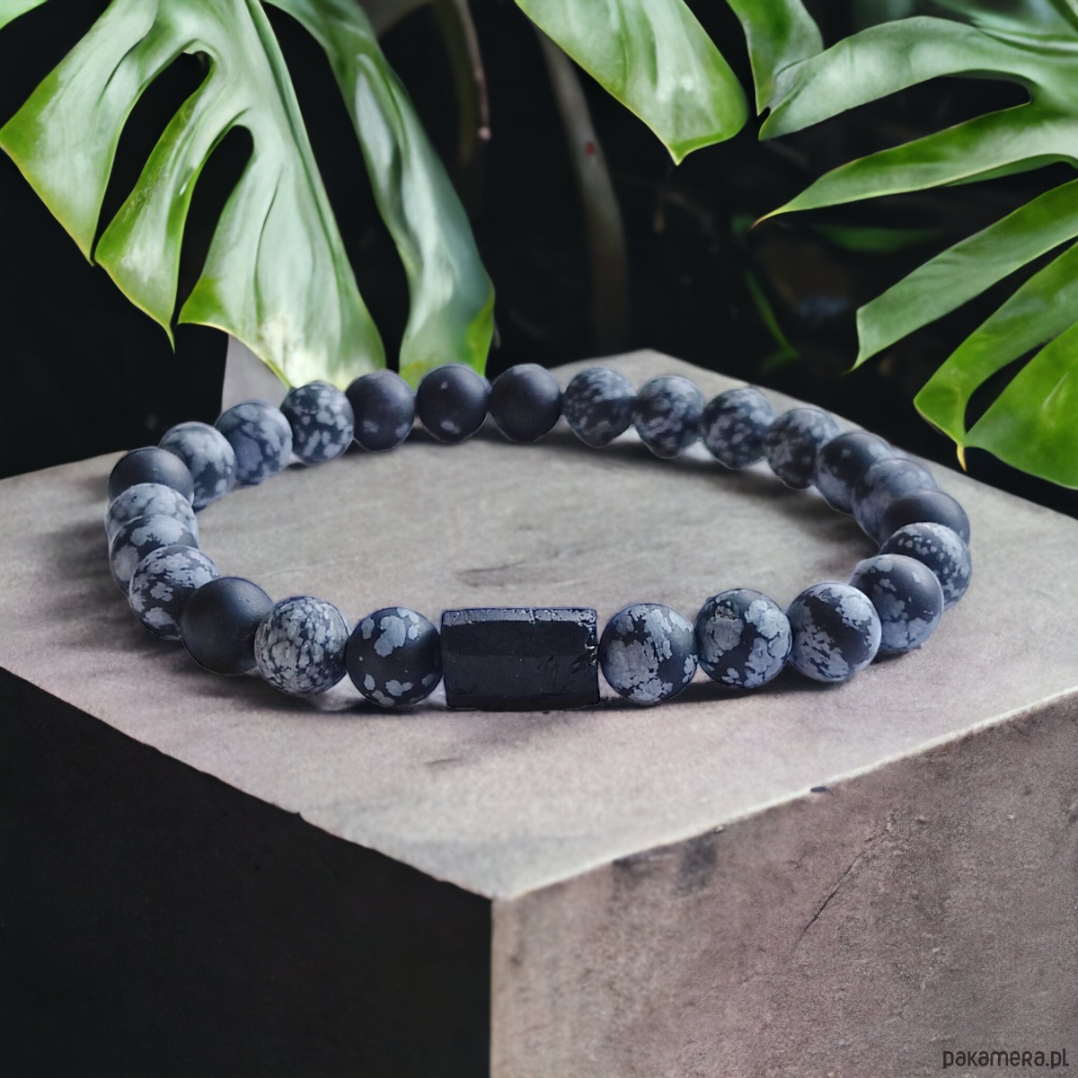 Obsydian śnieżny & turmalin : ochronna bransoletka