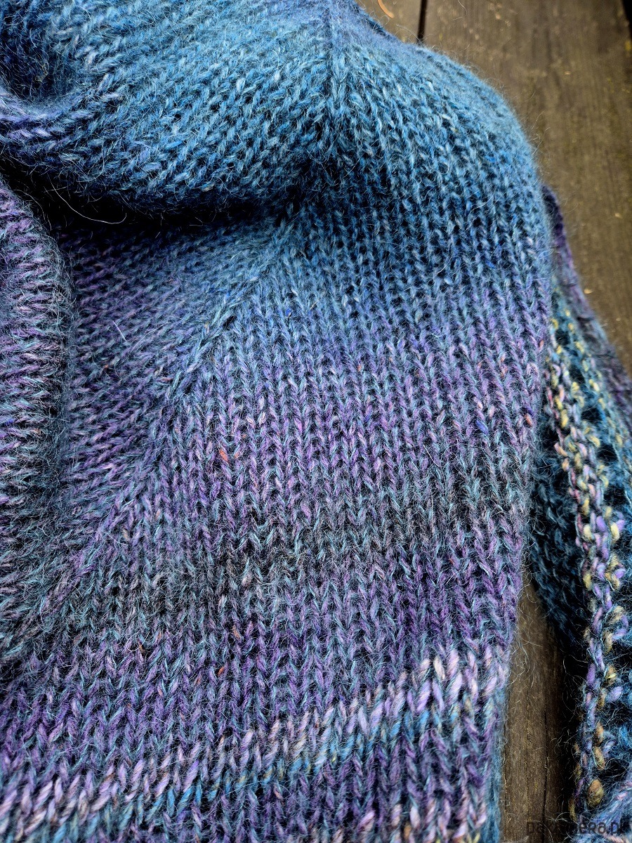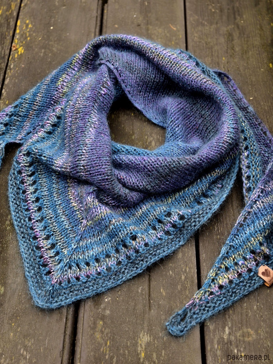 Miękka, puszysta i lejąca chusta, wykonana ręcznie na drutach z wysokiej jakości włóczek- do pięknie wybarwionej tweedowej dodałam japońską Noro.