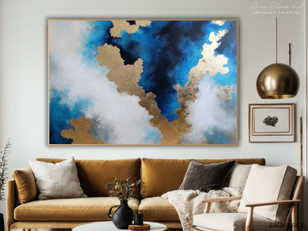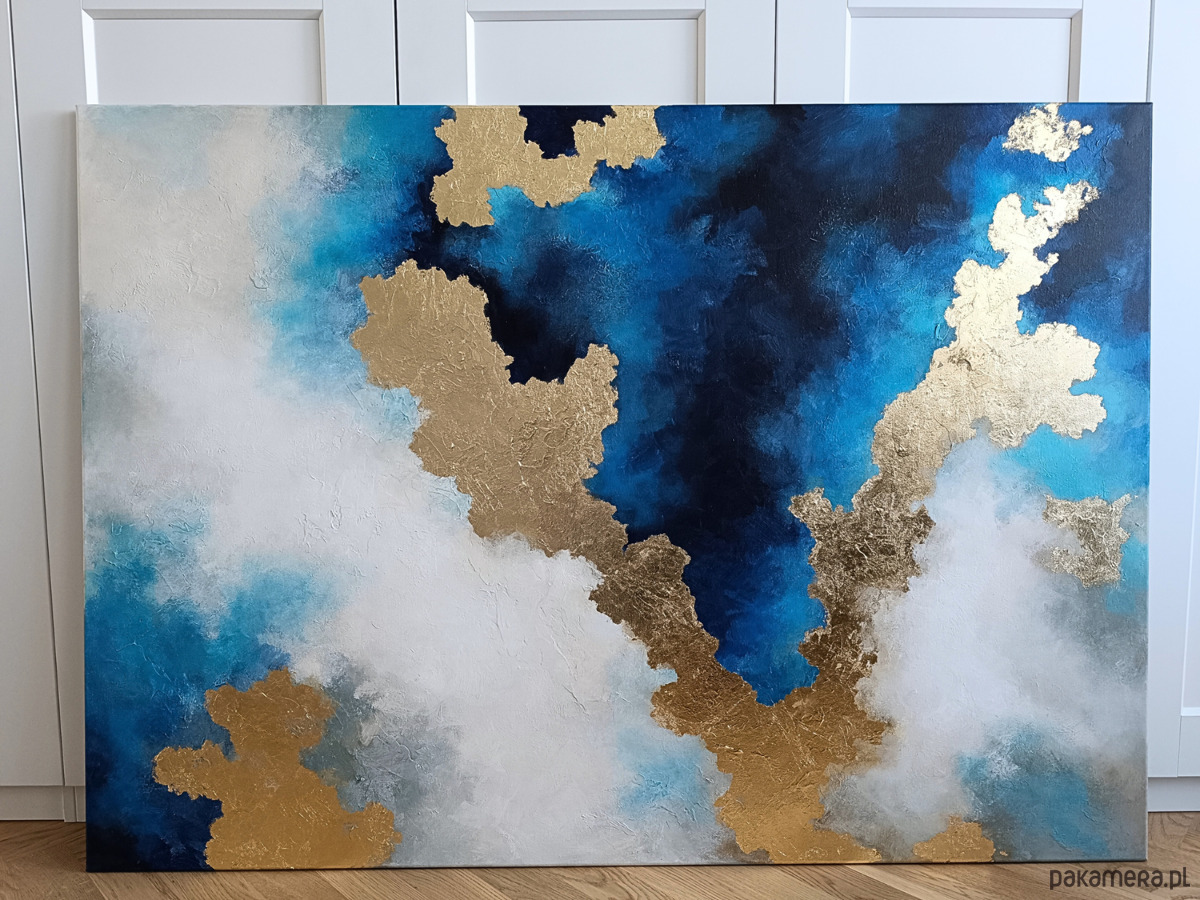OCEAN ŚWIATŁA - obraz abstrakcyjny z fakturą i złoceniami 140x100 cm