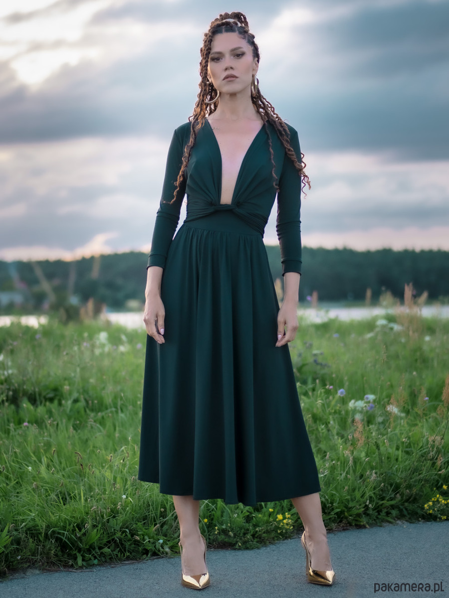 Sukienka, która zmienia się razem z Tobą. „Oceana” to projekt zaprojektowany z myślą o elastyczności, wygodzie i ekspresji - niezależnie od tego, czy potrzebujesz eleganckiego looku do pracy, zmysłowej wersji na wieczór, czy luźnego, nonszalanckiego wiązania na lato w mieście.