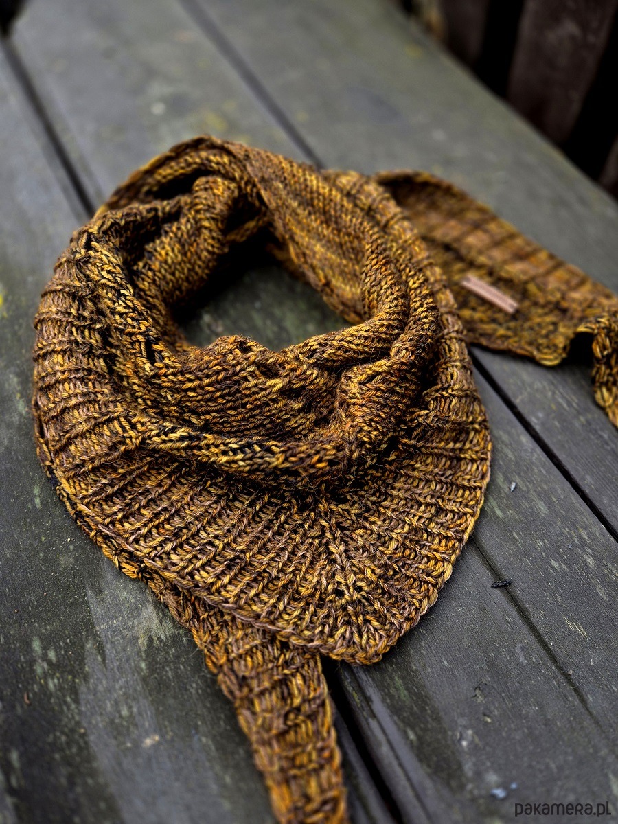 Cudownie miękka chustka- z tych mniejszych, takich do otulenia szyi i dekoltu... fantastyczne kolory dała cudowna, ręcznie farbowana peruwiańska Malabrigo, do której dodałam cieniutkie nitki alpaki.
