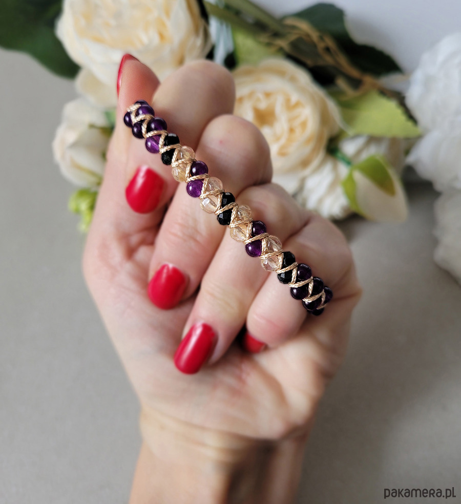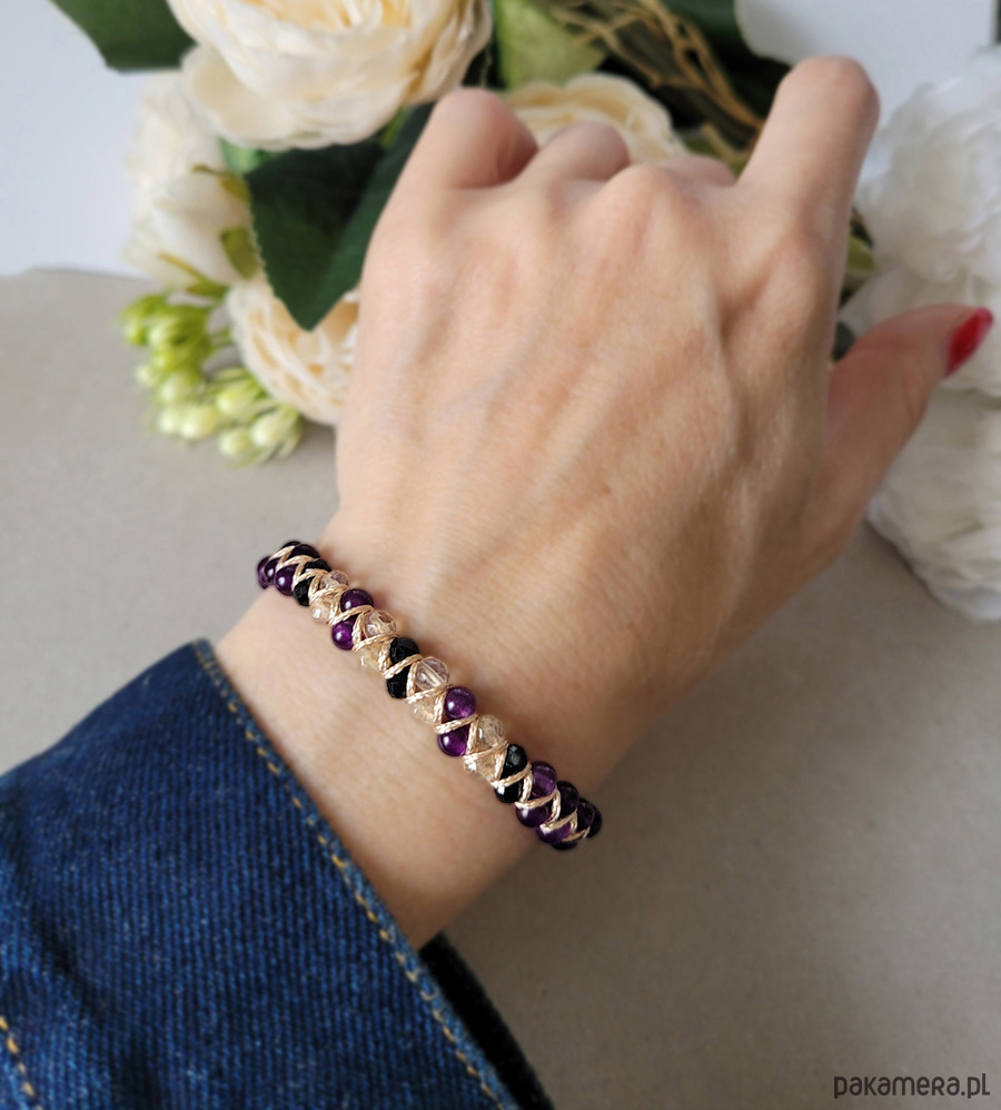 Bransoletka w pięknym fiolecie. Idealna na lato z pięknie wkomponowanym czarnym Turmalinem.