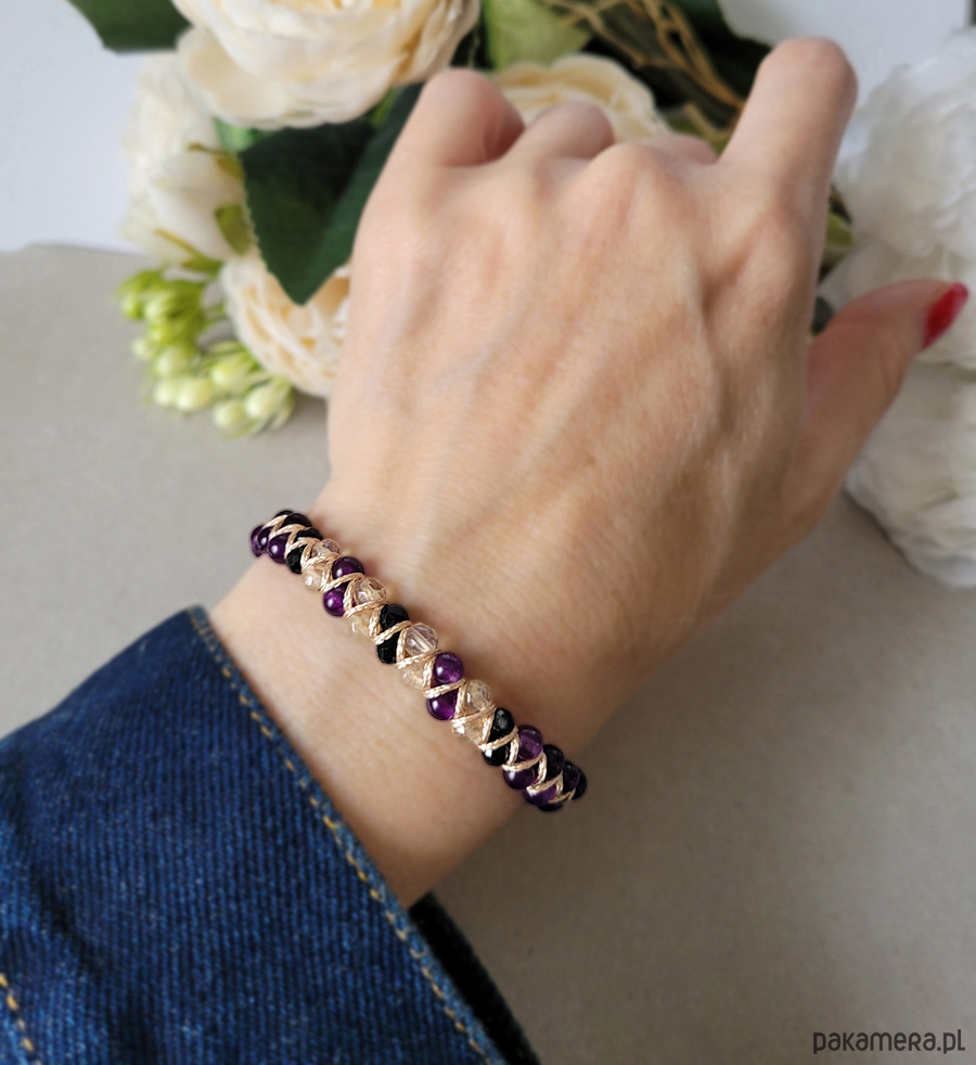 Bransoletka w pięknym fiolecie. Idealna na lato z pięknie wkomponowanym czarnym Turmalinem.