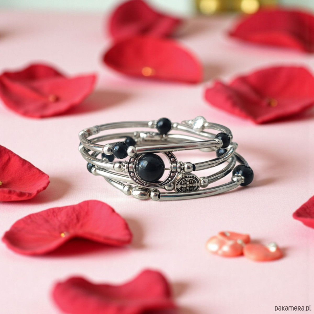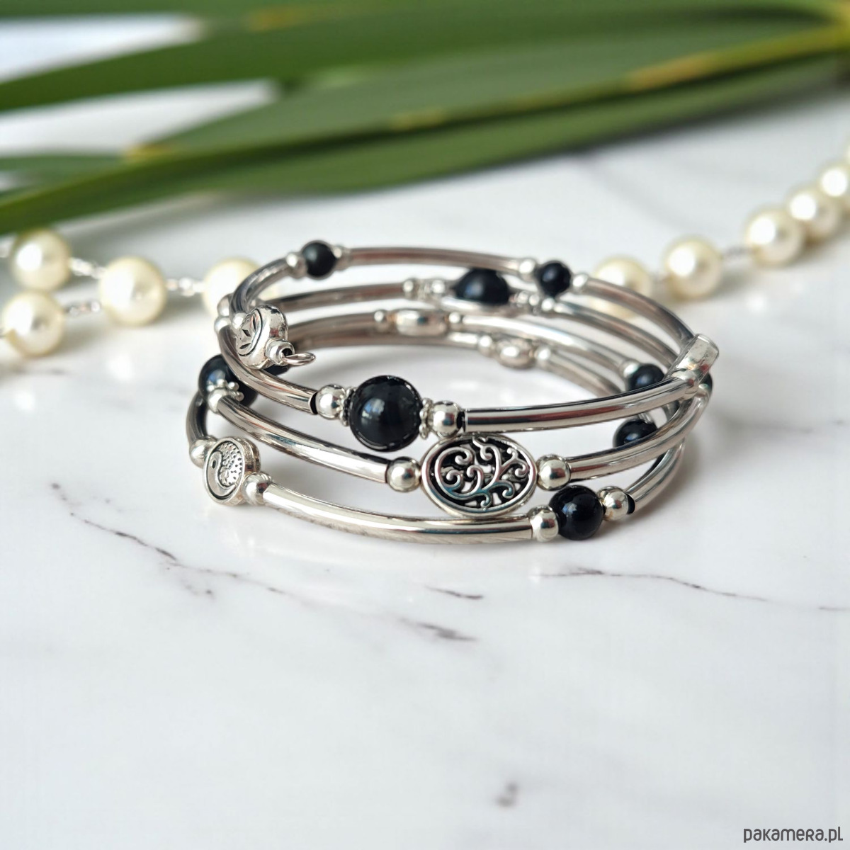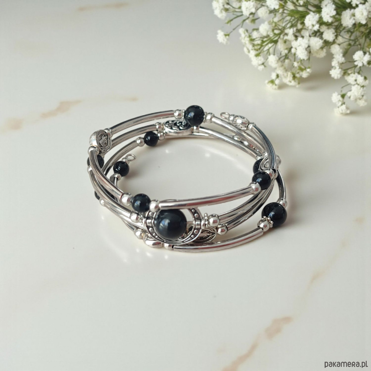Elegancka energetyczna bransoletka warstwowa (wielorzędowa) z kulkami czarnego turmalinu. Oczyszczona, zregenerowana, napełniona energią czystego światła o najwyższej wibracji. ❤