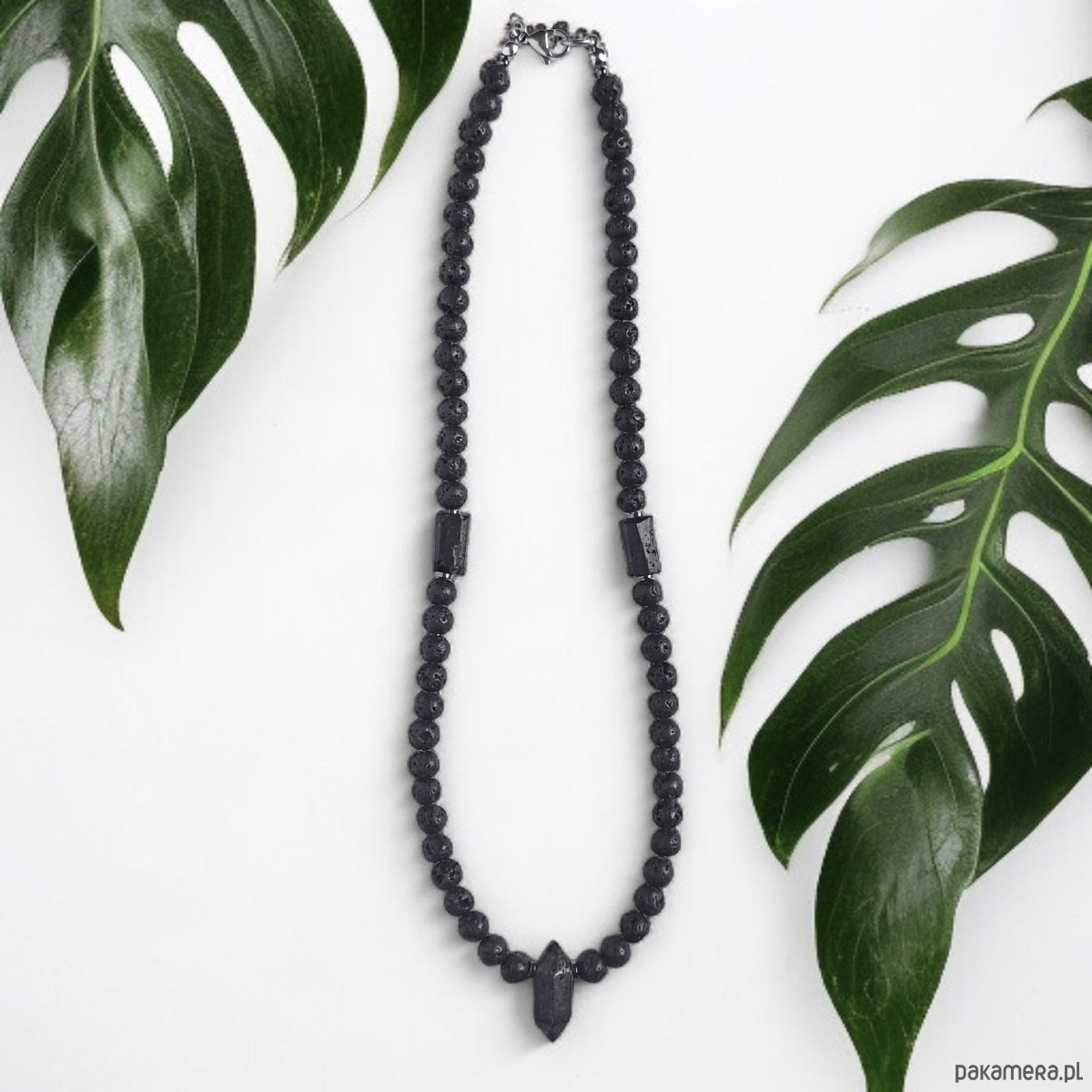 OCHRONA, energia : naszyjnik męski : lawa, turmalin