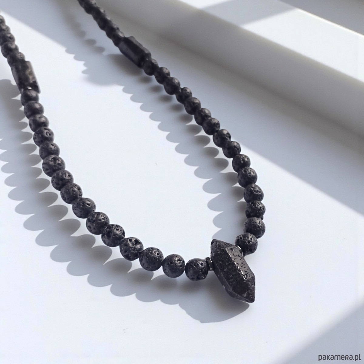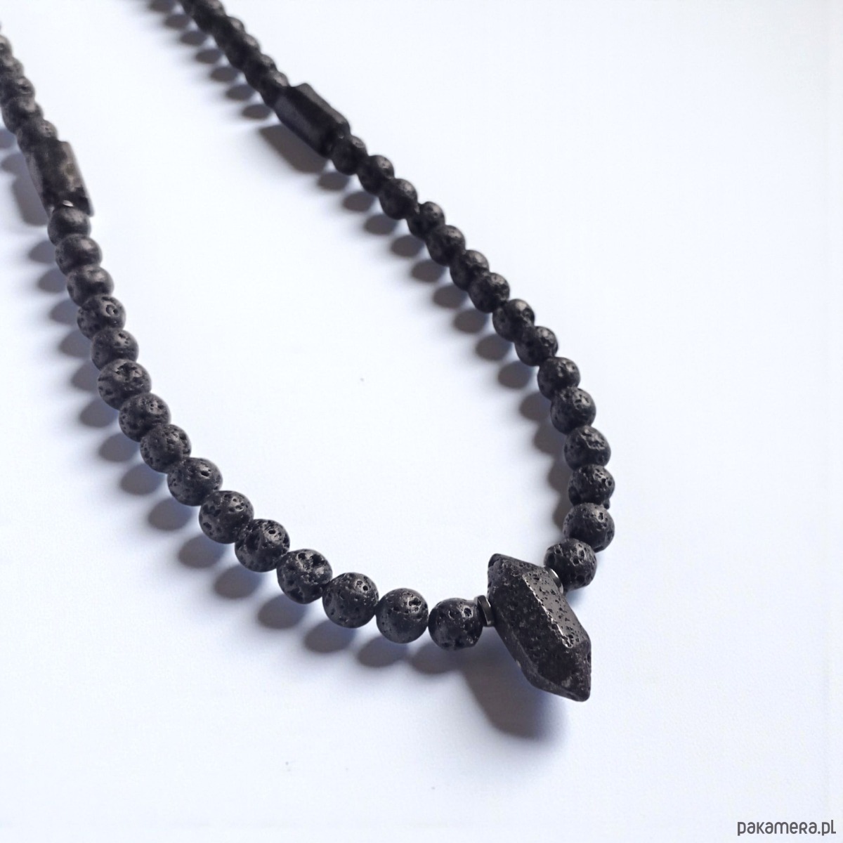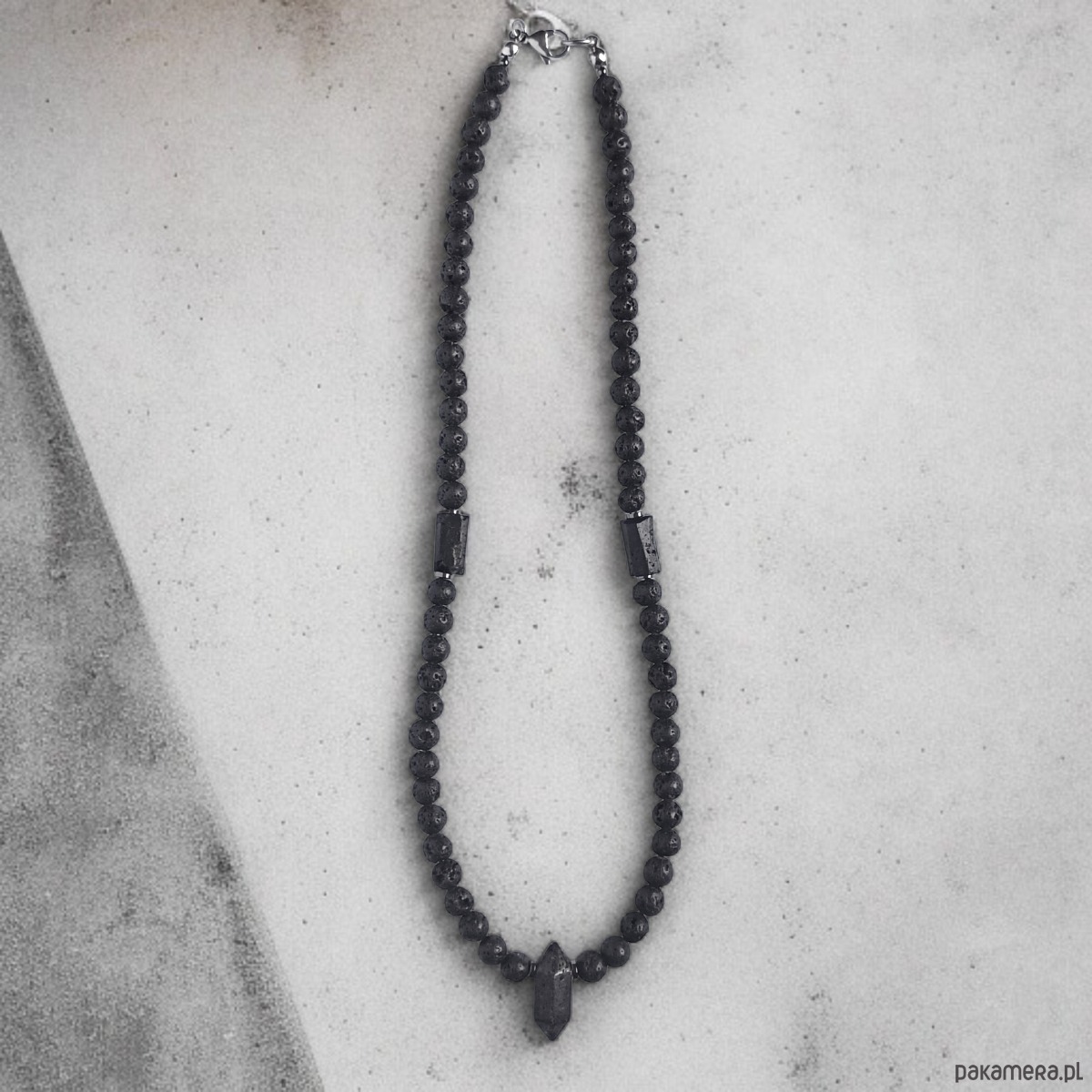 OCHRONA, energia : naszyjnik męski : lawa, turmalin