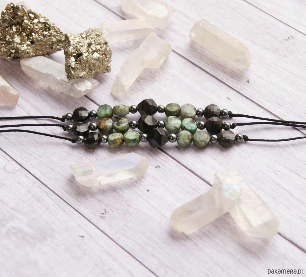 - Rodzaj kamienia: hematyt, obsydian, turkus