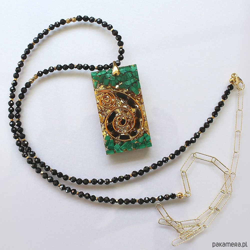 Ochrona energii - Naszyjnik z orgonitem, turmalinem, malachitem, spinelem