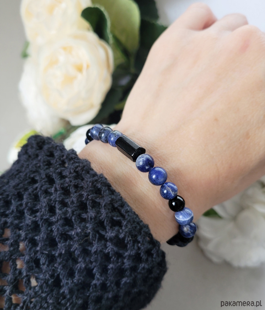 Przepiękna bransoletka zrobiona z kamieni naturalnych: Turmalinu czarnego, Sodalitu oraz Onyksu.