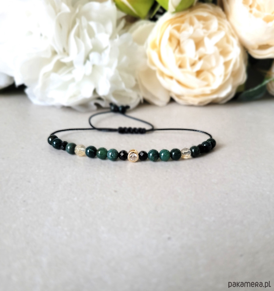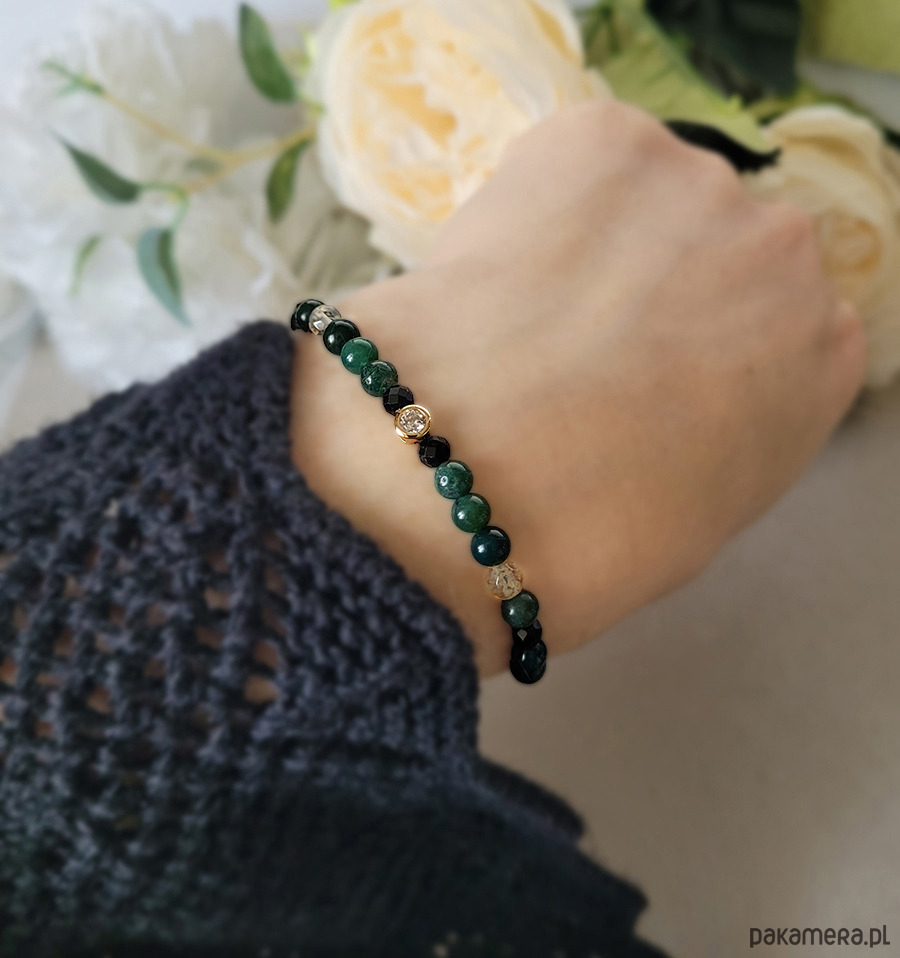 bransoletka zrobiona z kamieni naturalnych: Turmalinu, Cytrynu, Agatu mszystego.