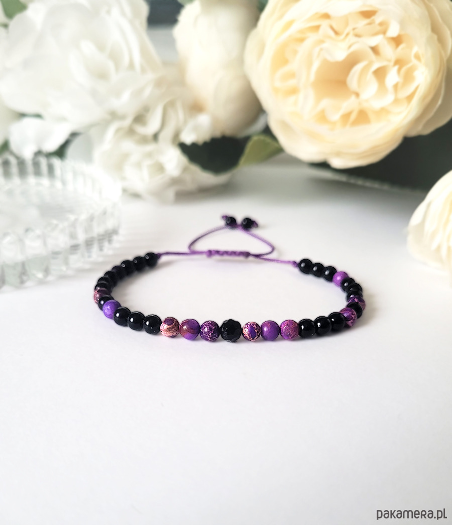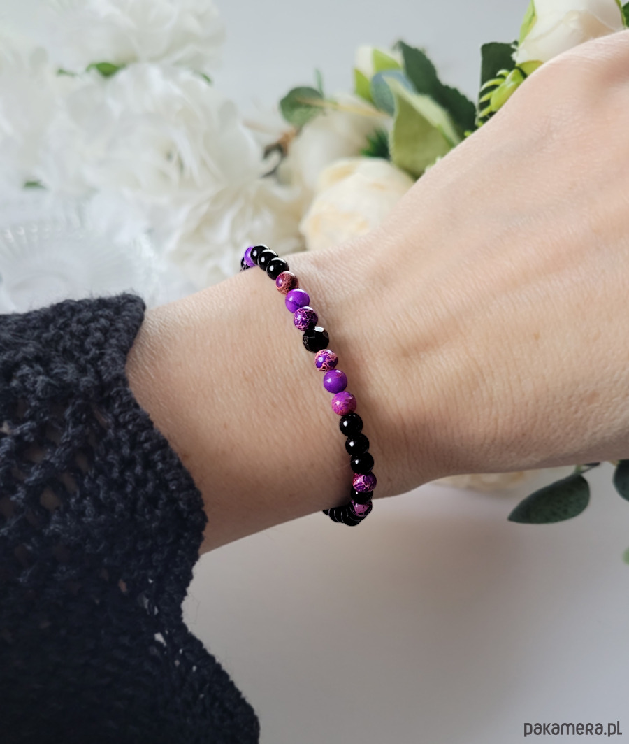 Przepiękna bransoletka zrobiona z kamieni naturalnych: Turmalinu, Jaspisu Cesarskiego oraz Onyksu.