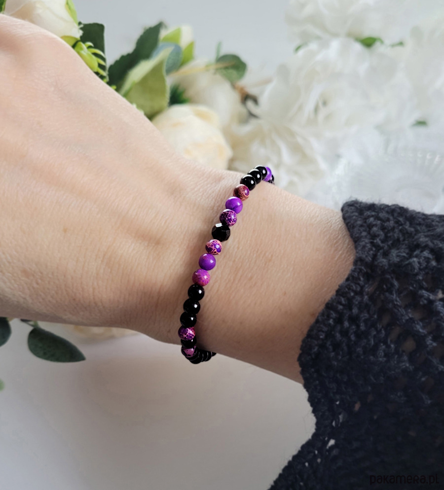 Przepiękna bransoletka zrobiona z kamieni naturalnych: Turmalinu, Jaspisu Cesarskiego oraz Onyksu.