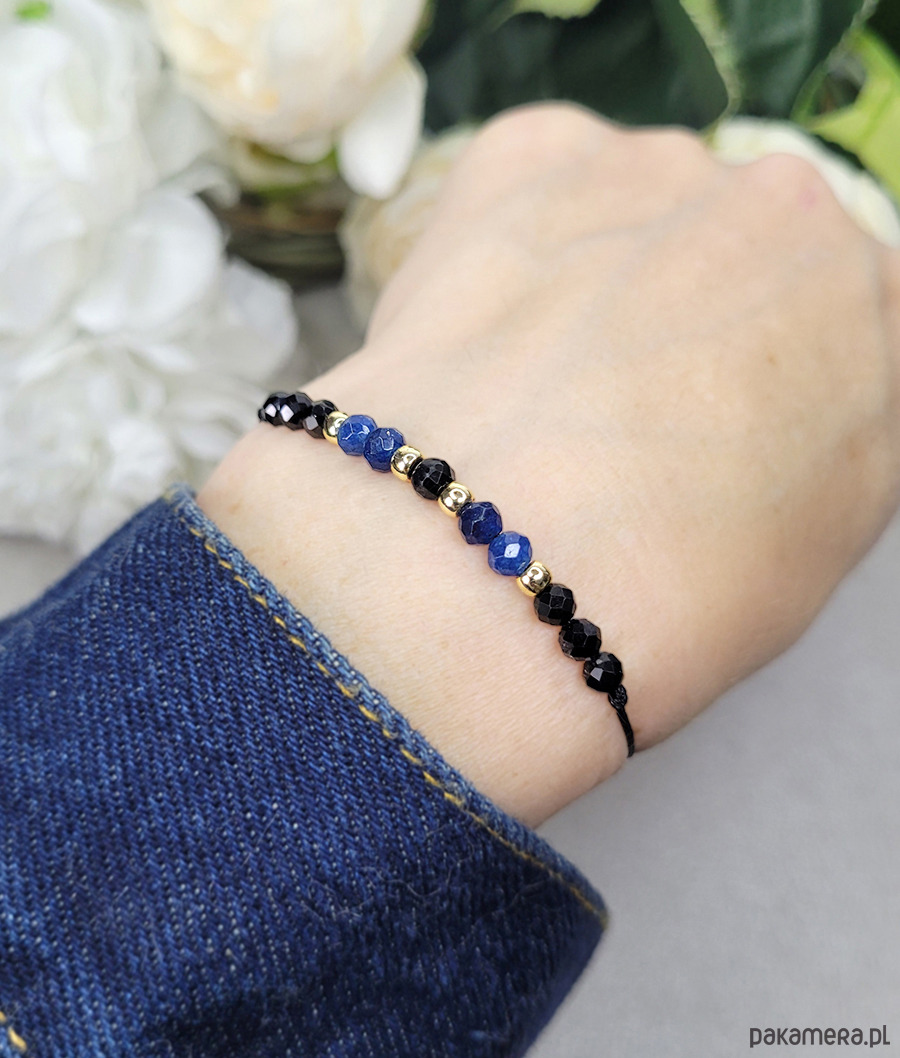 Przepiękna delikatna bransoletka zrobiona z kamieni naturalnych: Turmalinu, Spinelu, Agatu i Hematytu w kolorze złota.