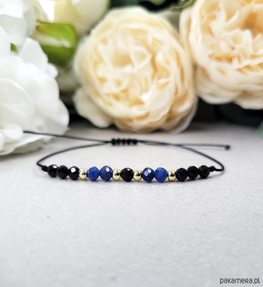 Bransoletka na czarnym sznureczku nylonowym powlekanym - obwód regulowany.