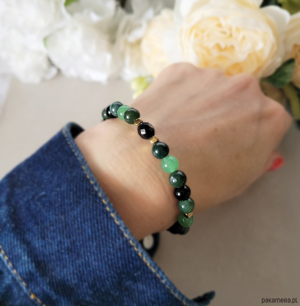 - Typ bransoletki: koralikowa, elastyczna