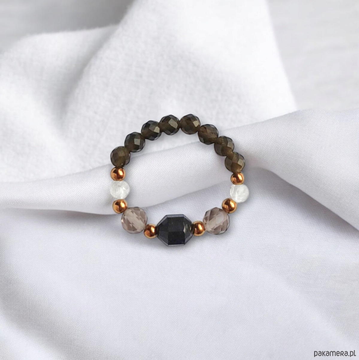 OCHRONA : pierścionek II - turmalin, obsydian, kwarc dymny, kryształ górski