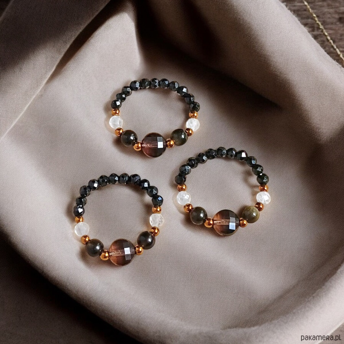 OCHRONA : pierścionek - turmalin, obsydian, kwarc dymny, kryształ górski