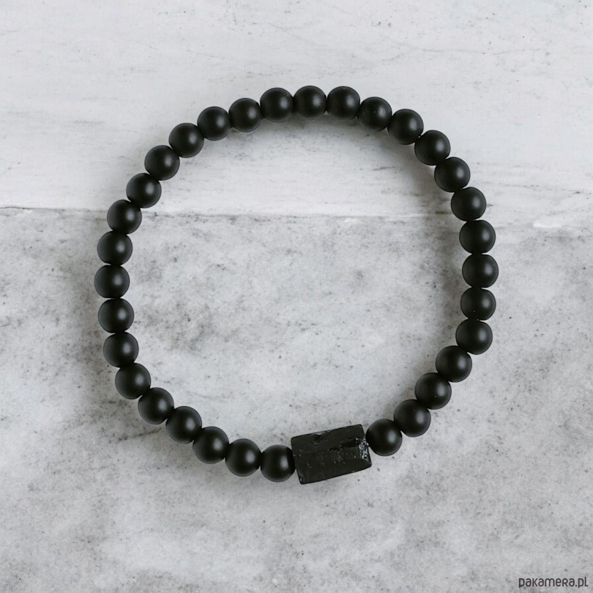 wykonana z czarnego turmalinu (bryłka surowa ,ciosana) oraz matowego onyksu (6mm)