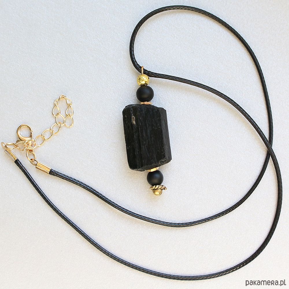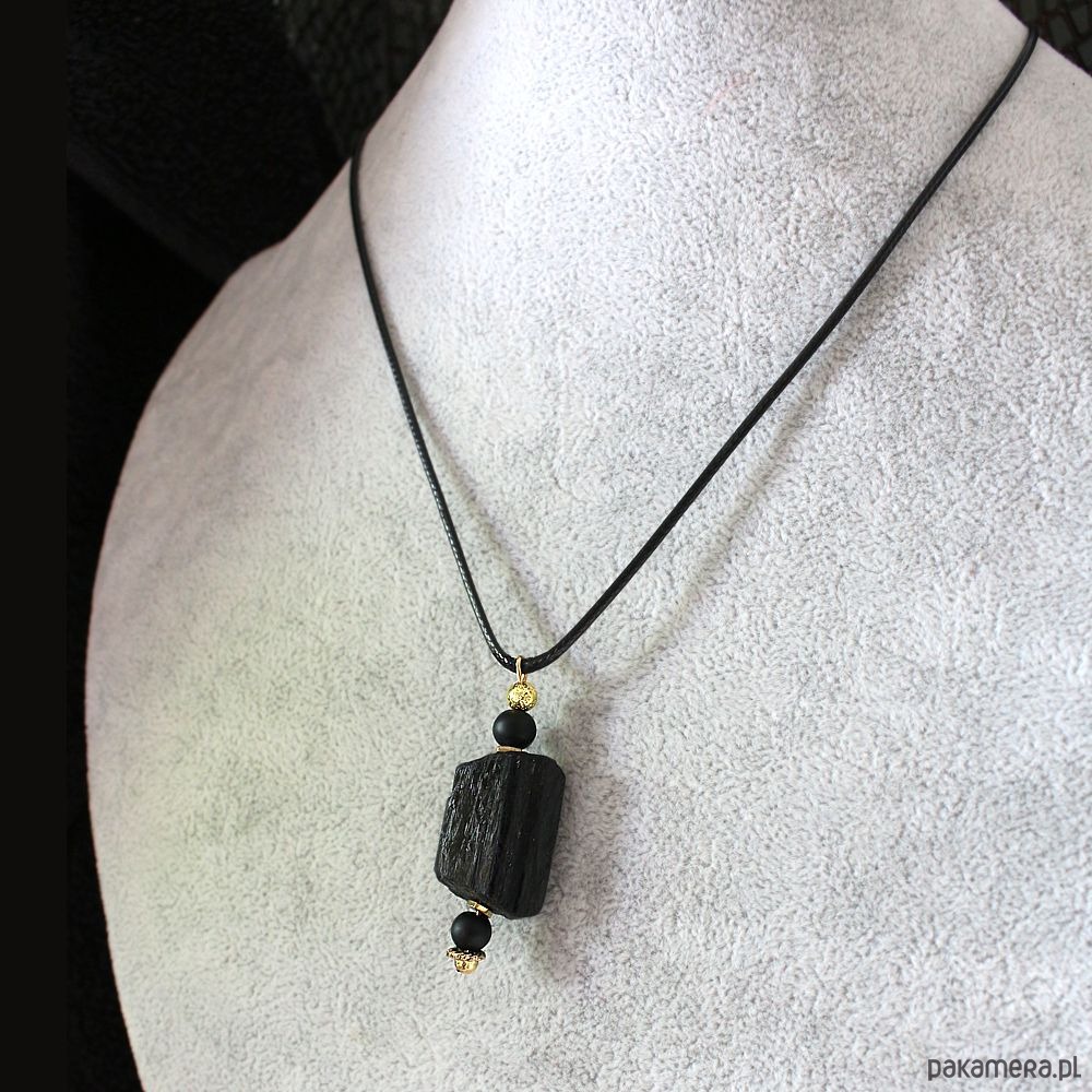 Ochrona: Surowy turmalin, matowy onyks, lawa pozłacana wisior