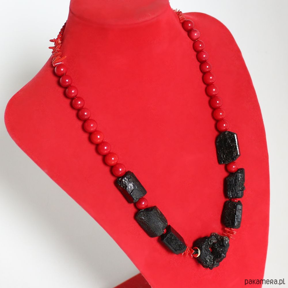 Ochrona Wolności - surowy czarny turmalin, koral, onyks