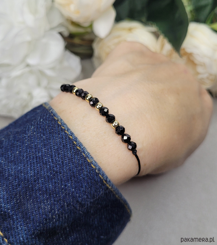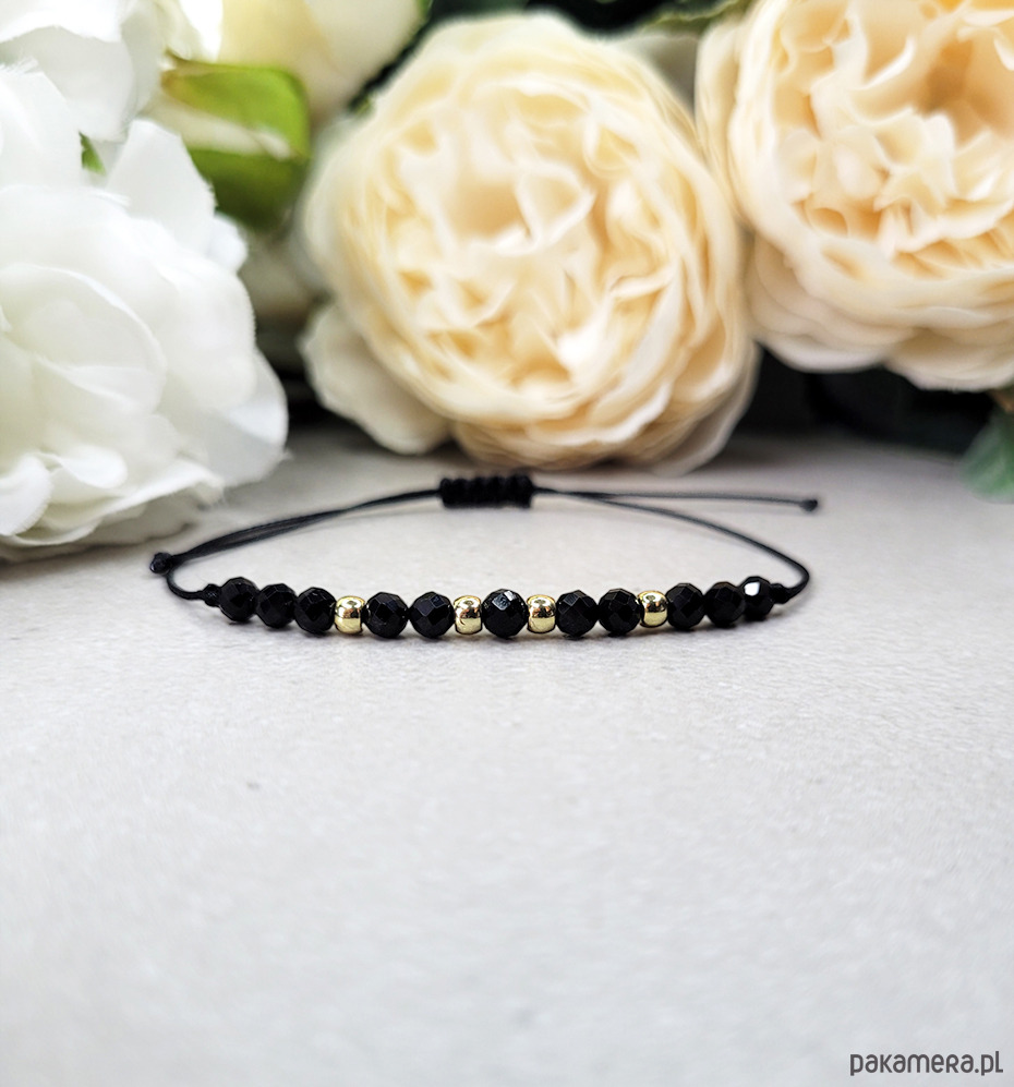Przepiękna delikatna bransoletka zrobiona z kamieni naturalnych: Turmalinu, Spinelu i Hematytu w kolorze złota.