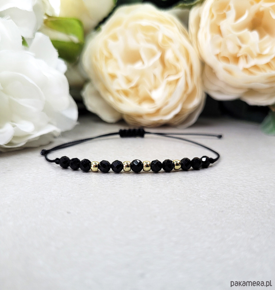 Przepiękna delikatna bransoletka zrobiona z kamieni naturalnych: Turmalinu, Spinelu i Hematytu w kolorze złota.