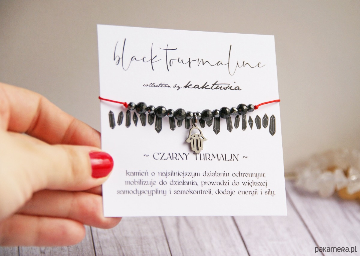 OCHRONNA bransoletka - czarny turmalin, hamsa