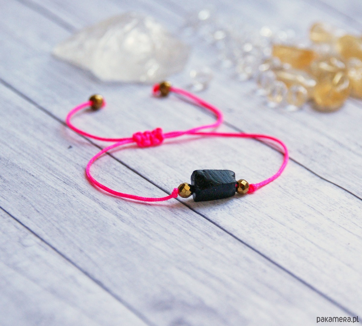 OCHRONNA bransoletka - czarny turmalin - hot pink