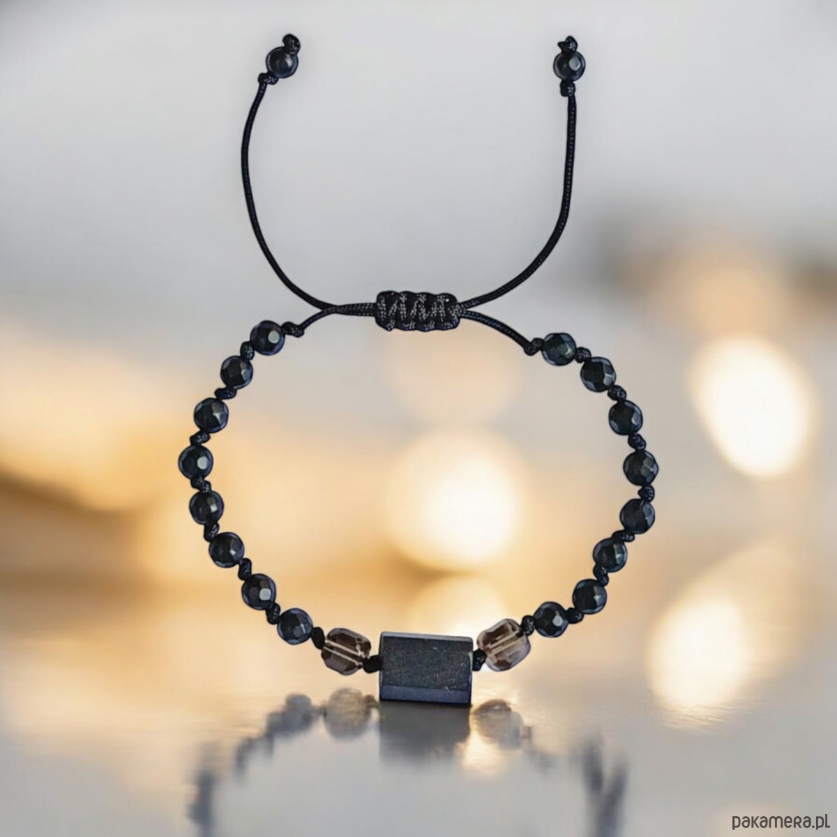 Ochronna bransoletka - czarny turmalin, kwarc dymny, onyks mat