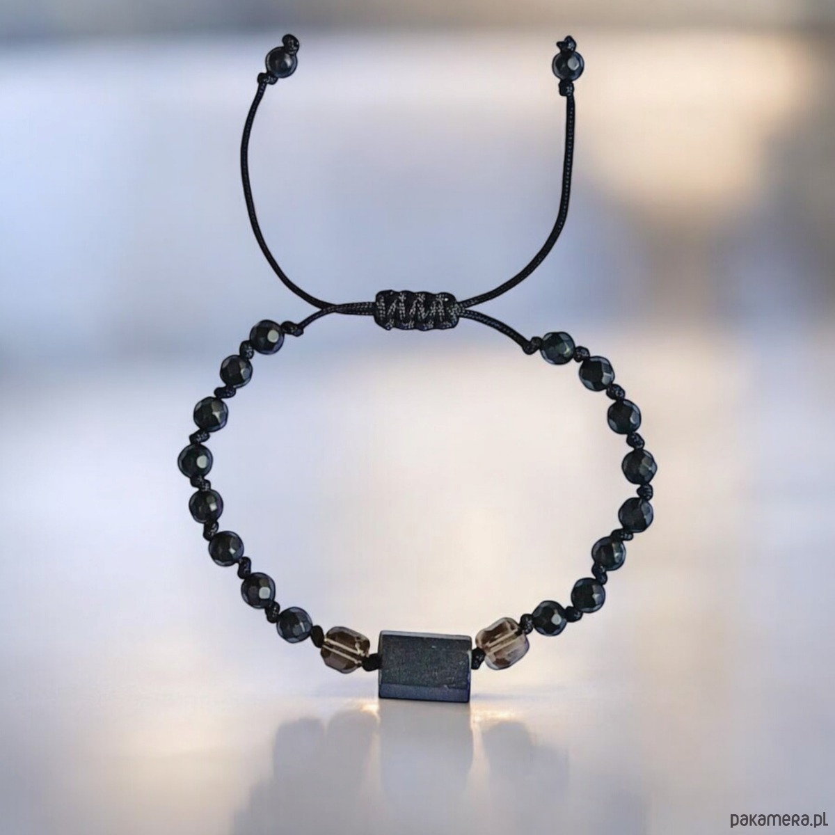 OCHRONNA bransoletka - czarny turmalin, kwarc dymny, onyks mat