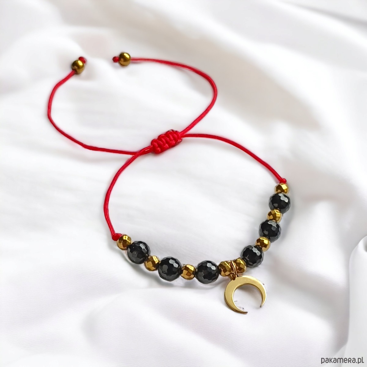 OCHRONNA bransoletka - czarny turmalin - lunula : czerwony sznurek