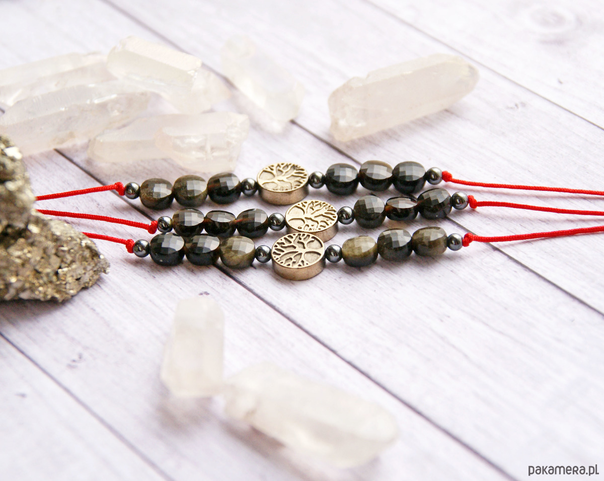 Ochronna bransoletka - drzewo życia, obsydian