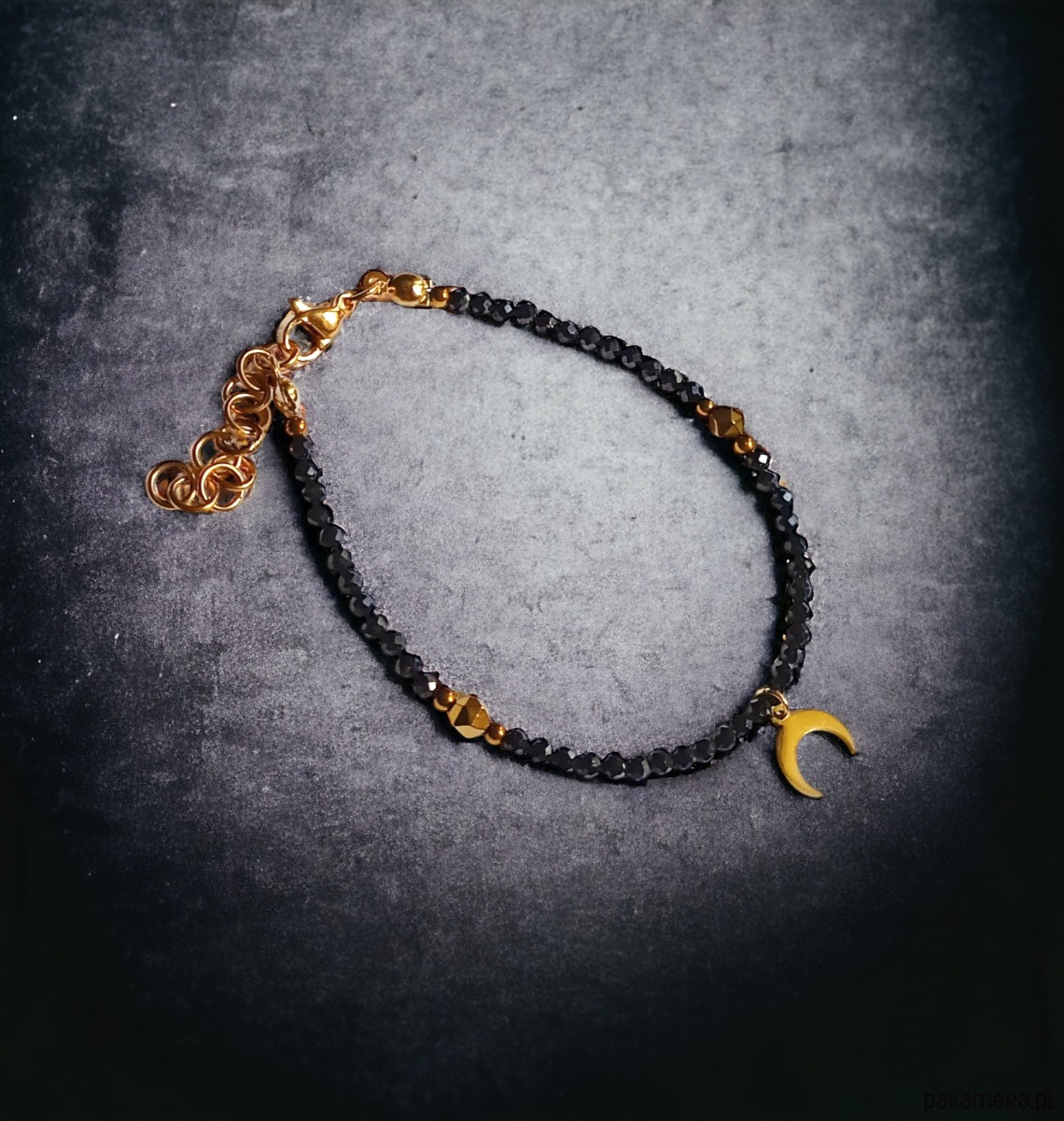użyte kamienie: czarny turmalin - najsilniejszy kamień ochronny (fasetowane kuleczki 3mm) oraz złoty hematyt 2 i 4mm (przekładki)