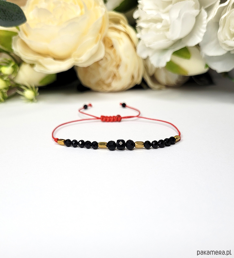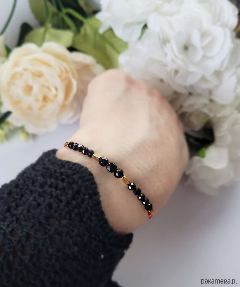 Przepiękna delikatna bransoletka zrobiona z kamieni naturalnych: Turmalinu, Spinelu oraz Hematytu w kolorze złota.