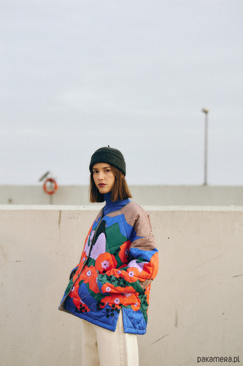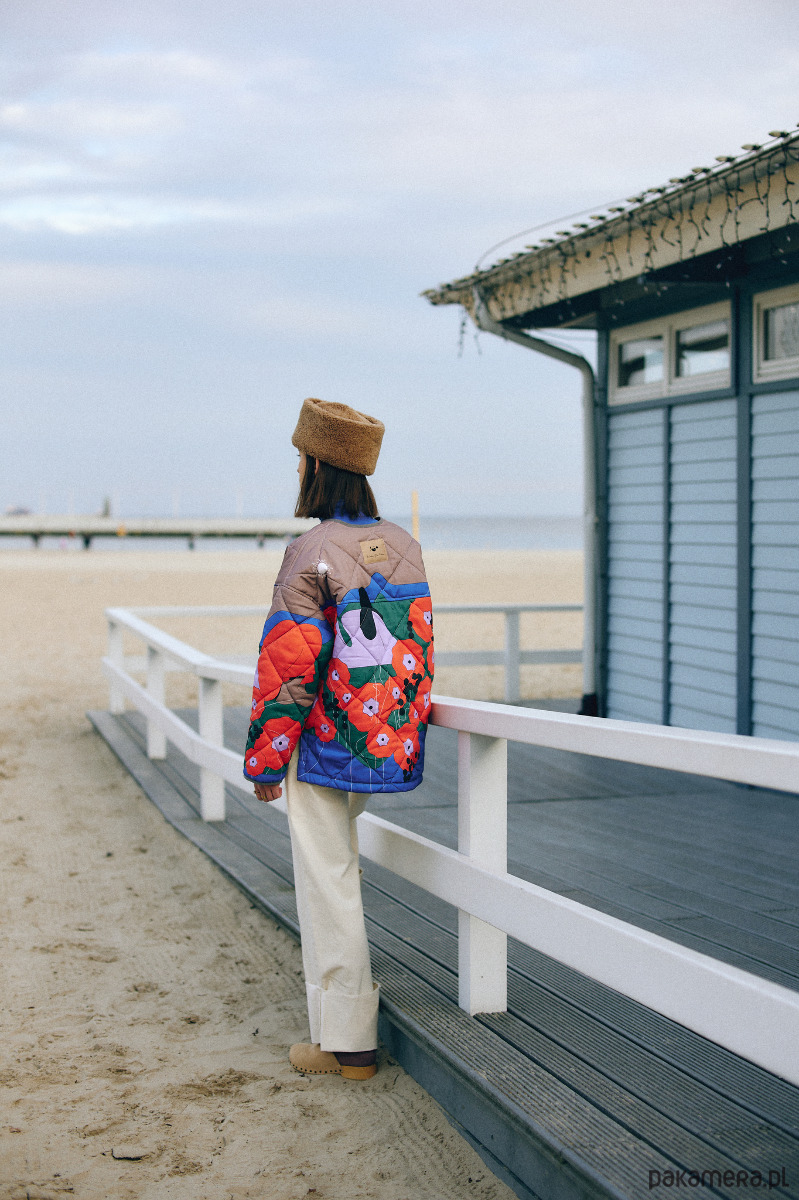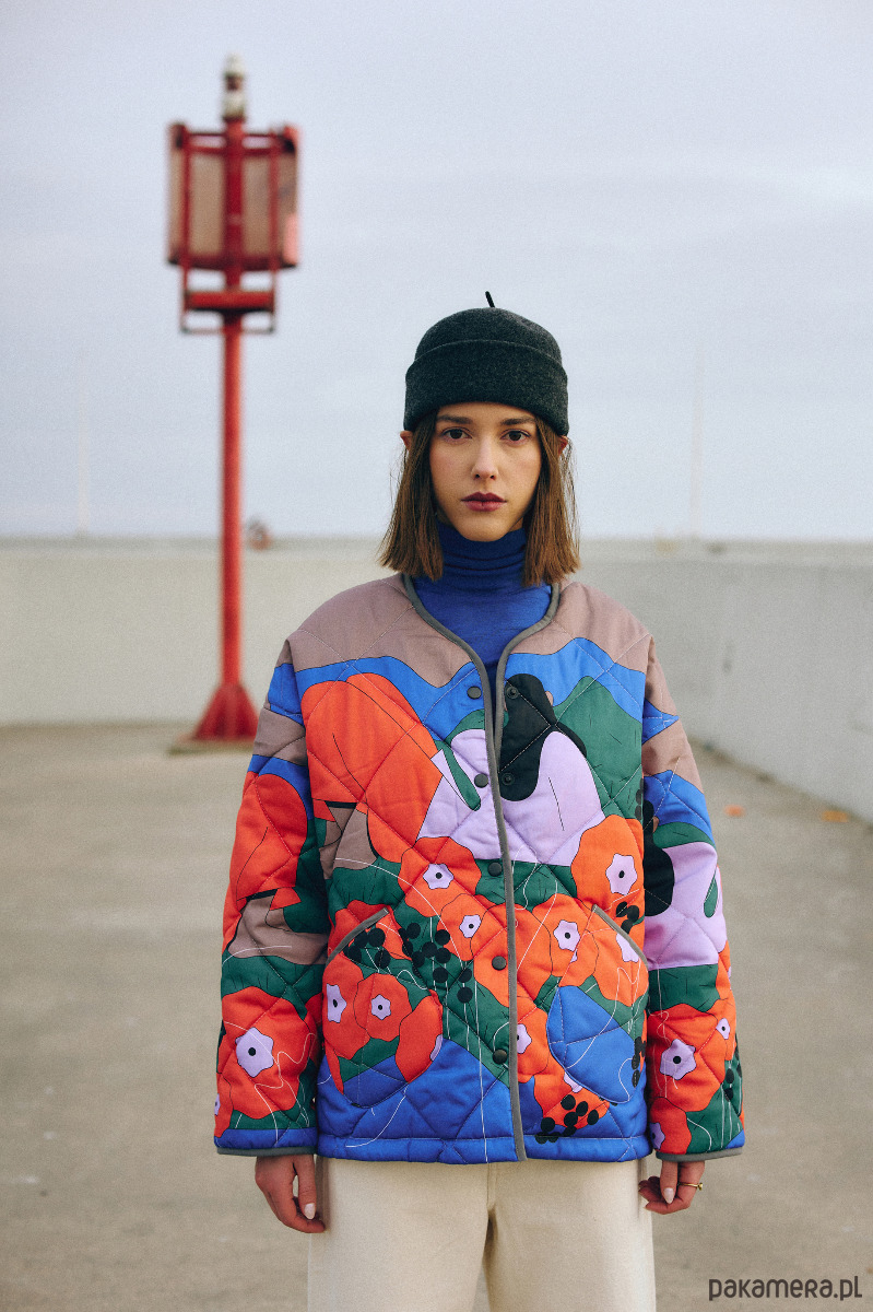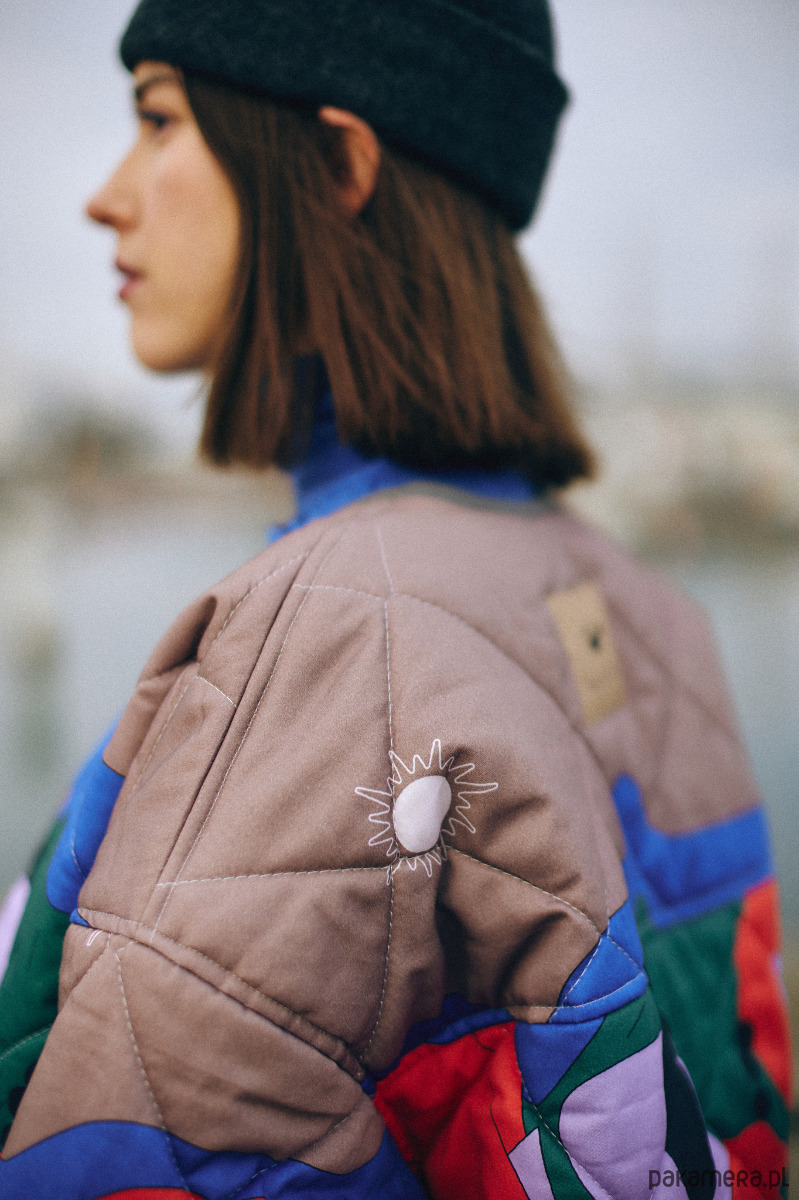 Ovieplana kurtka o pudełkowym kształcie uszyta z certyfikowanej, wysokogatunkowej bawełny satynowej. Wzór kurtki to prawdziwy majstersztyk ilustracji. Słoneczna opowieść o umiłowaniu wolności i wdzięczności wobec świata narysowana została przez ilustratorkę Justynę Stasik. Ten model został stworzony dla tych, którzy kochają detale (kryte szwy, wykończenie kurtki lamowką, żakardowa metka) oraz unikatowe wzory.