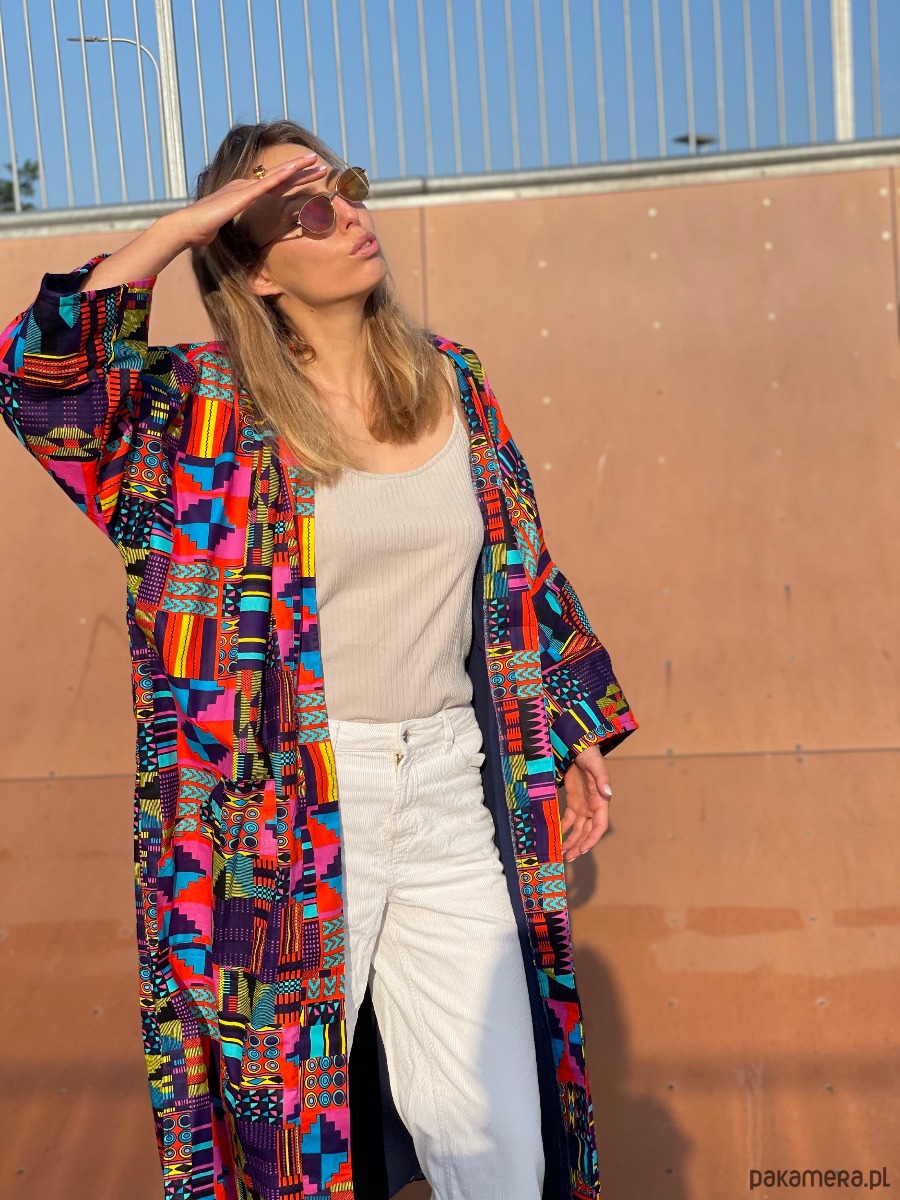 Kimono Dreamer to uniseksowy model uszyty z najwyższej jakości bawełnianej tkaniny African Wax.
