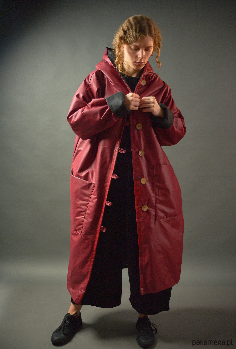 Długi płaszcz impregnowany na podszewce z kapturem ocieplany