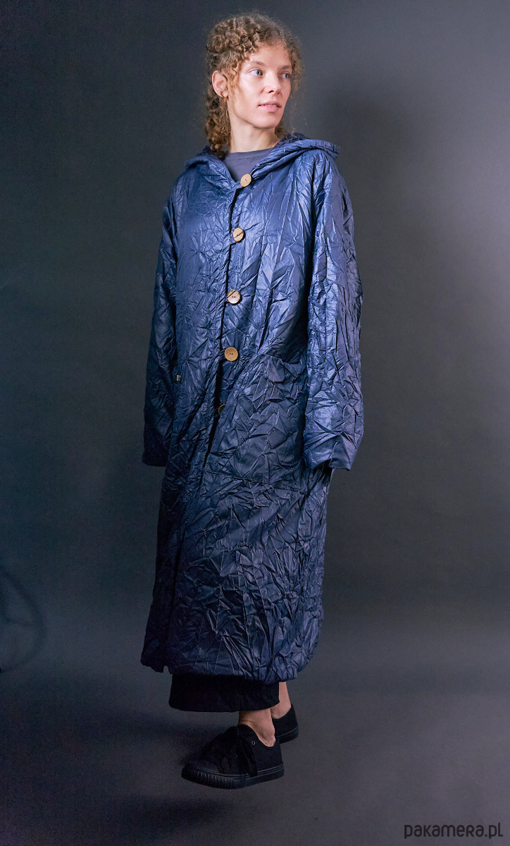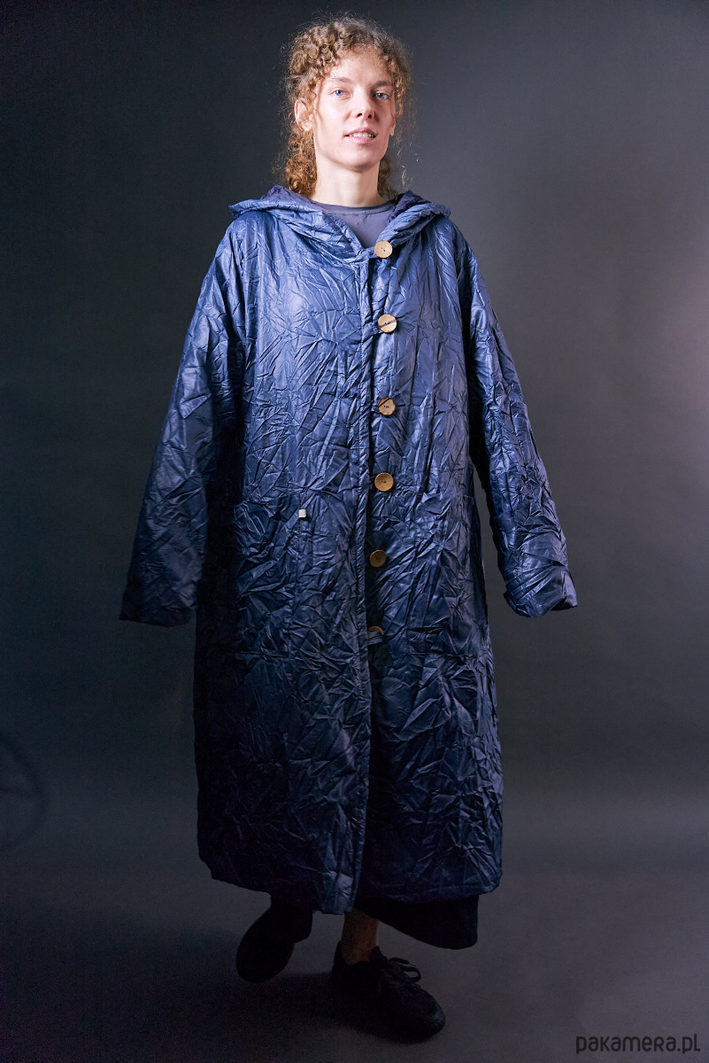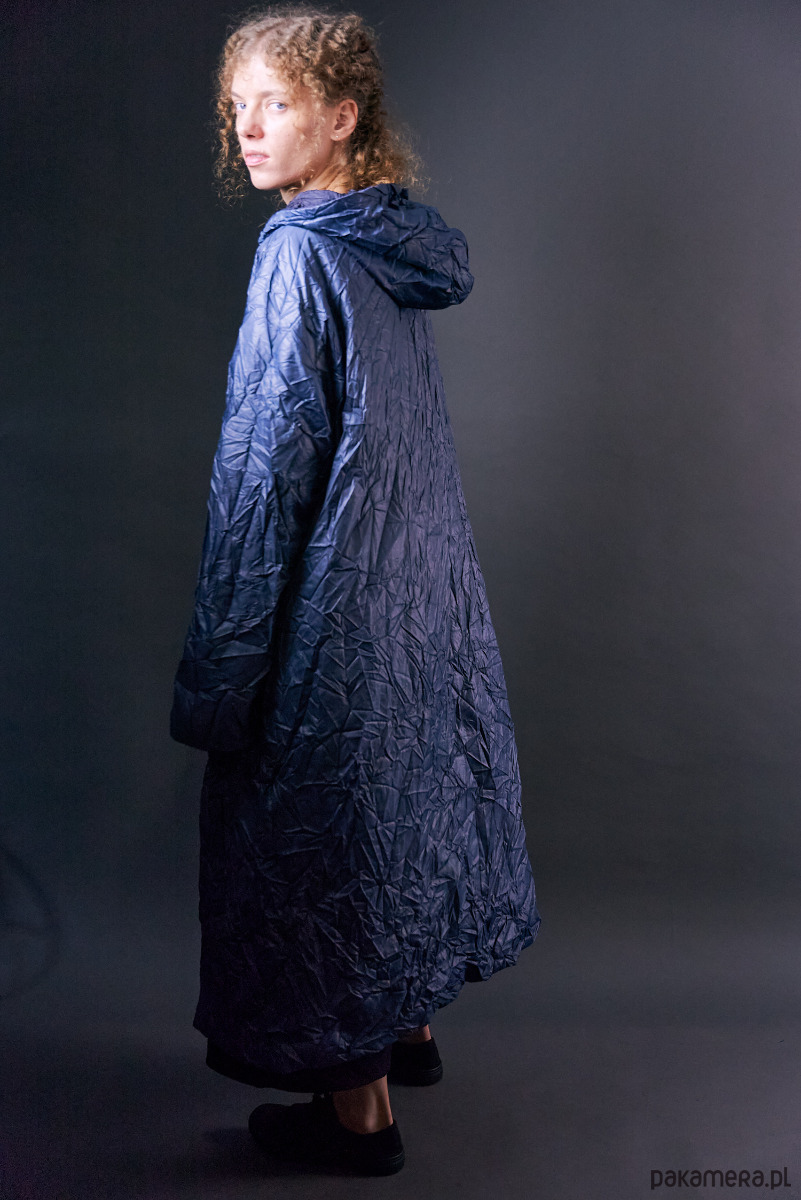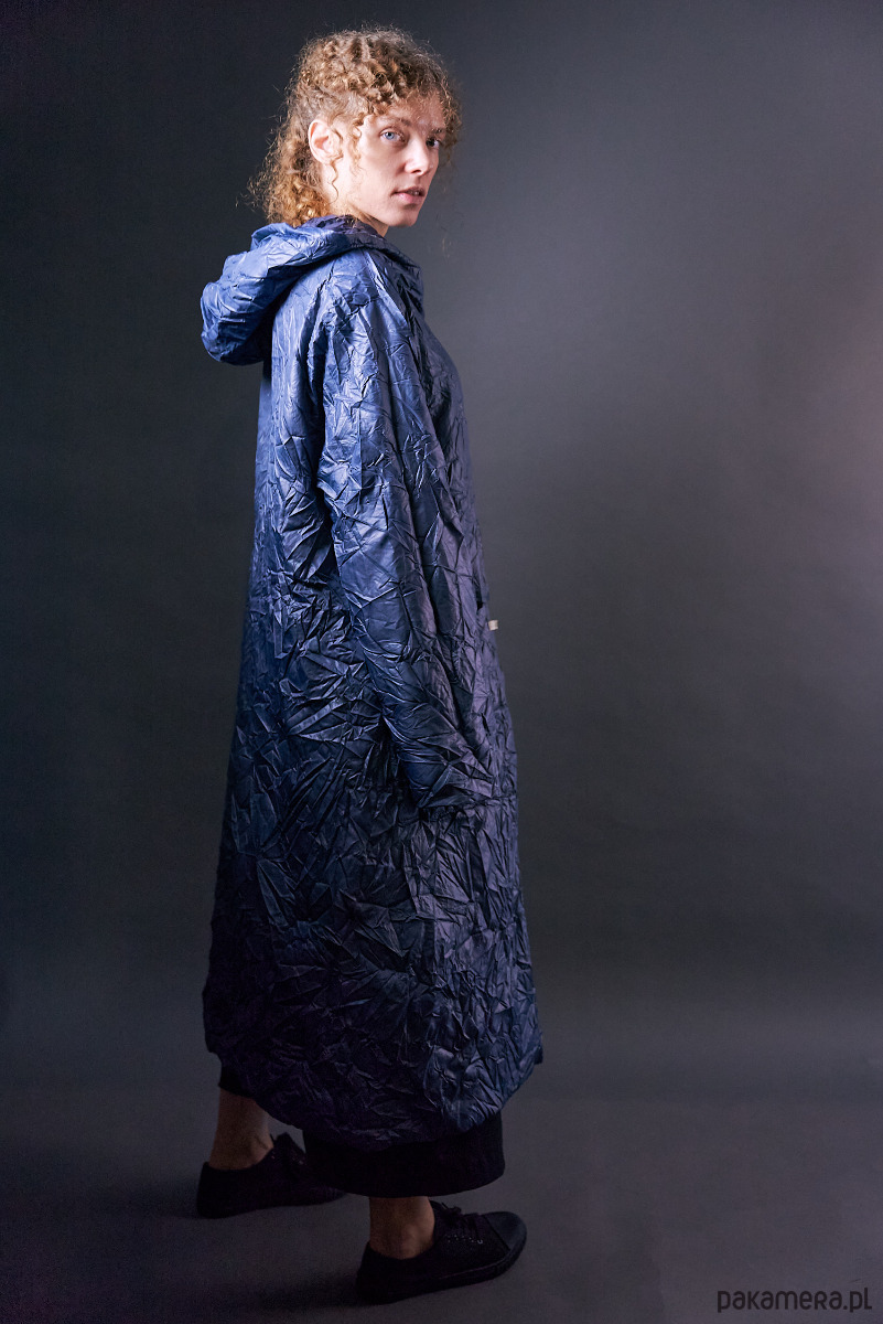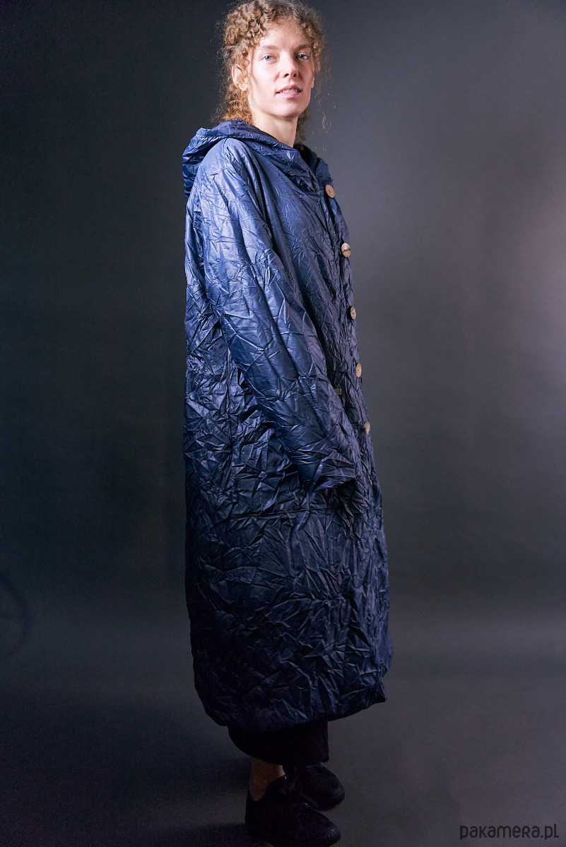 Ocieplany płaszcz impregnowany plisowany/gnieciony z kapturem.