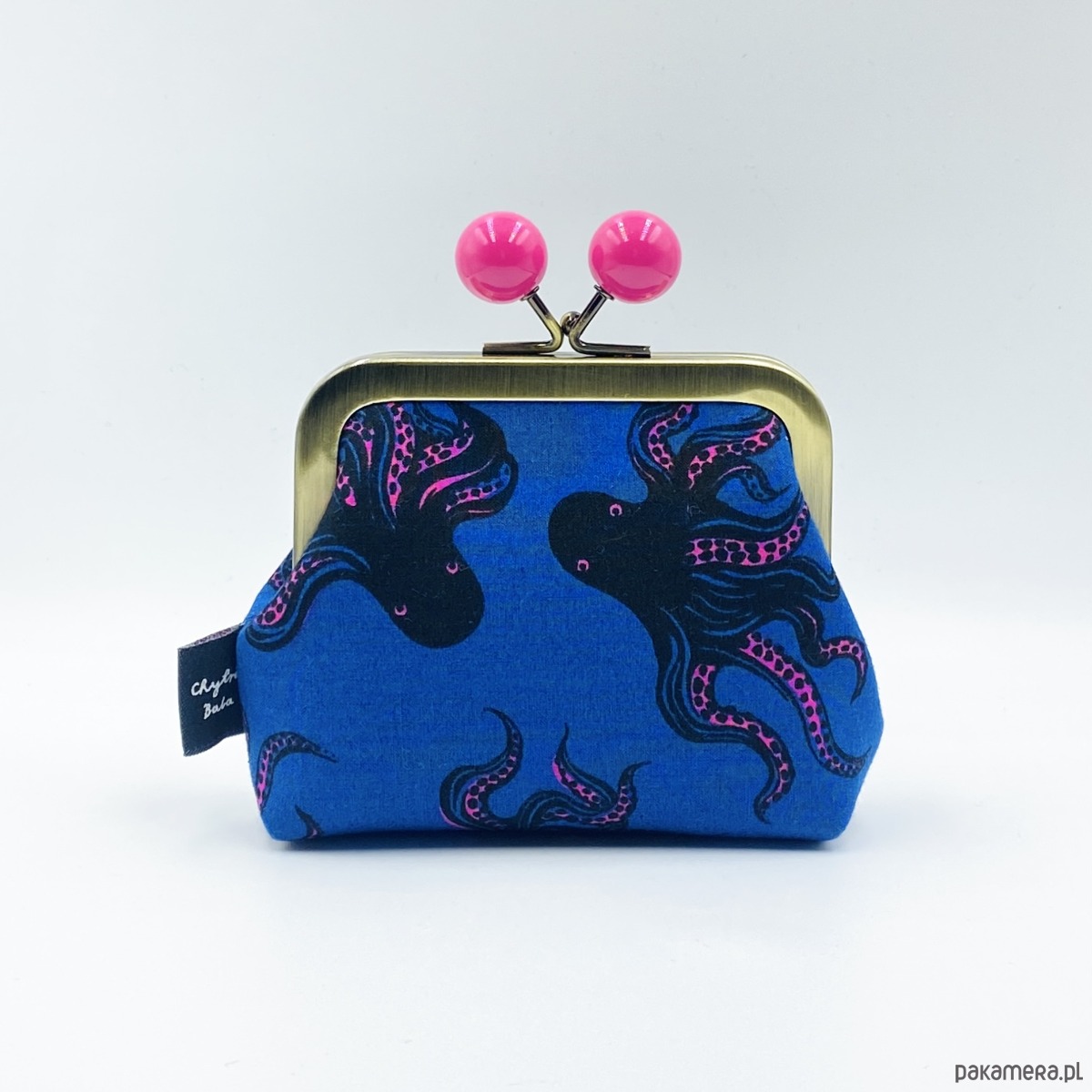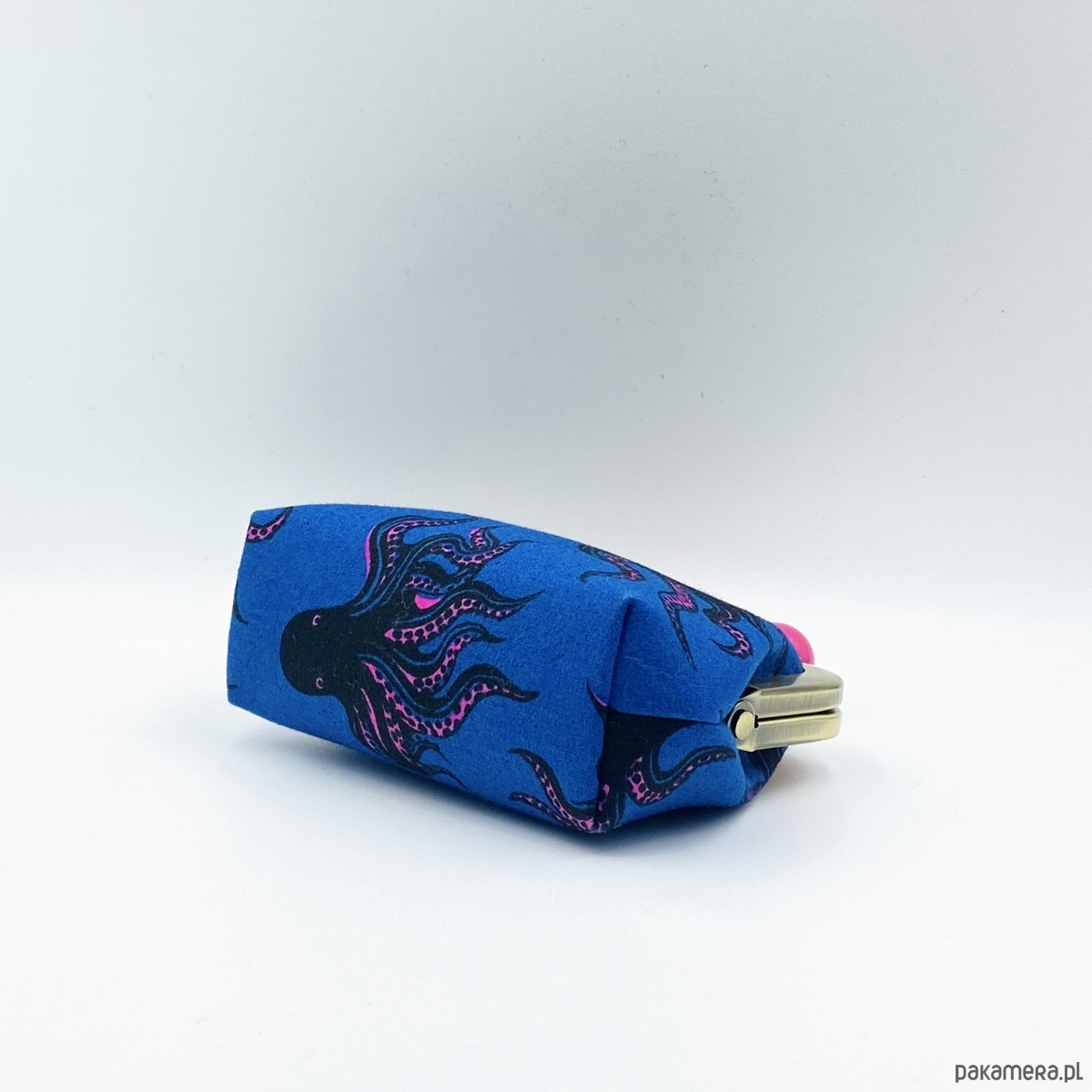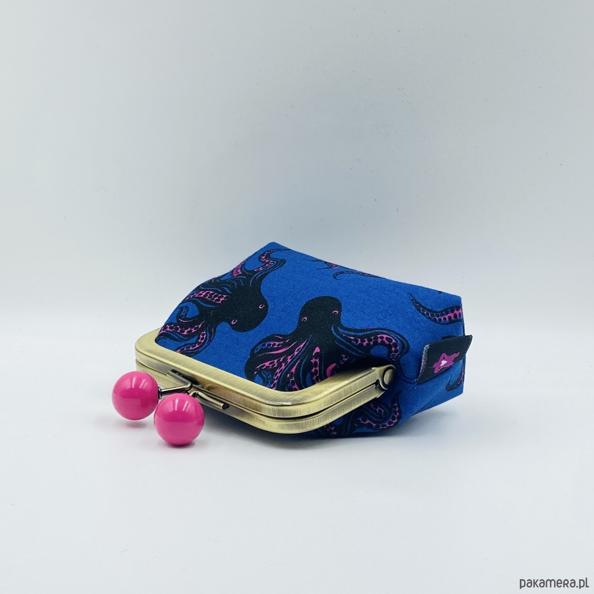 Portmonetka „Octopus Navy” przedstawia czarne ośmiornice na granatowym tle. Warstwa zewnętrzna została wykonana z bawełnianej tkaniny. Wewnętrzna podszewka wykonana została z bawełny w kolorze stalowoszarym w krzyżyki. Jednokomorowa portmonetka, mieści w sobie karty kredytowe.