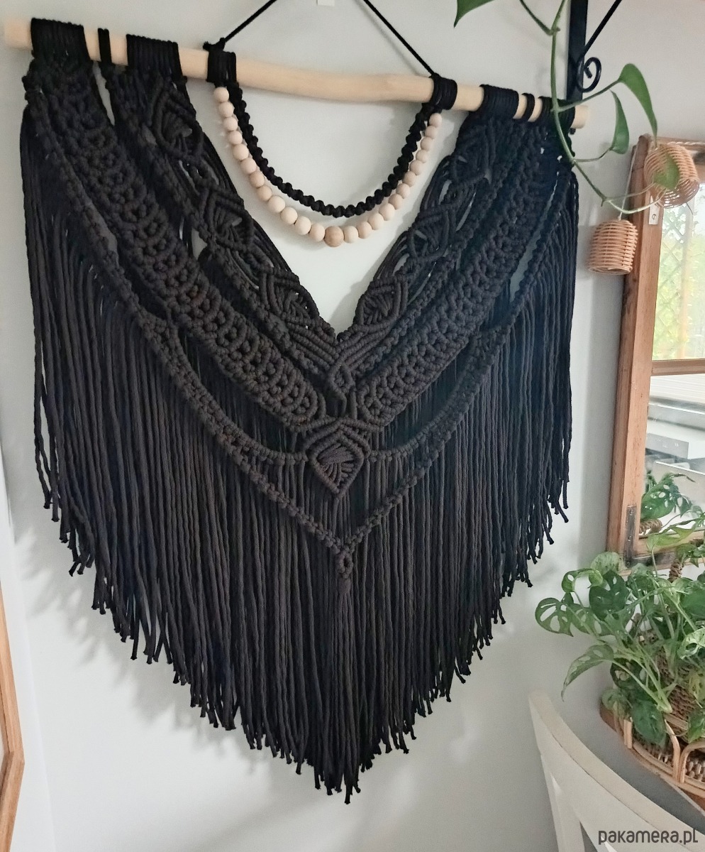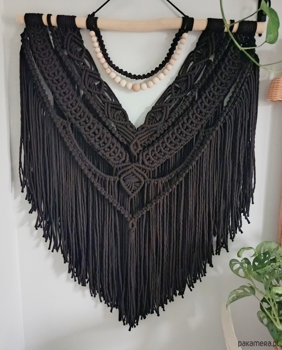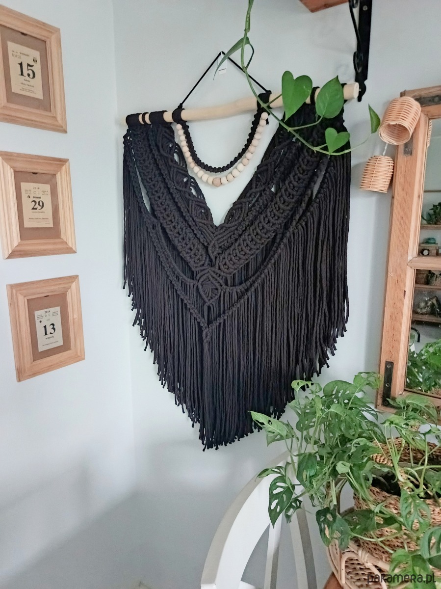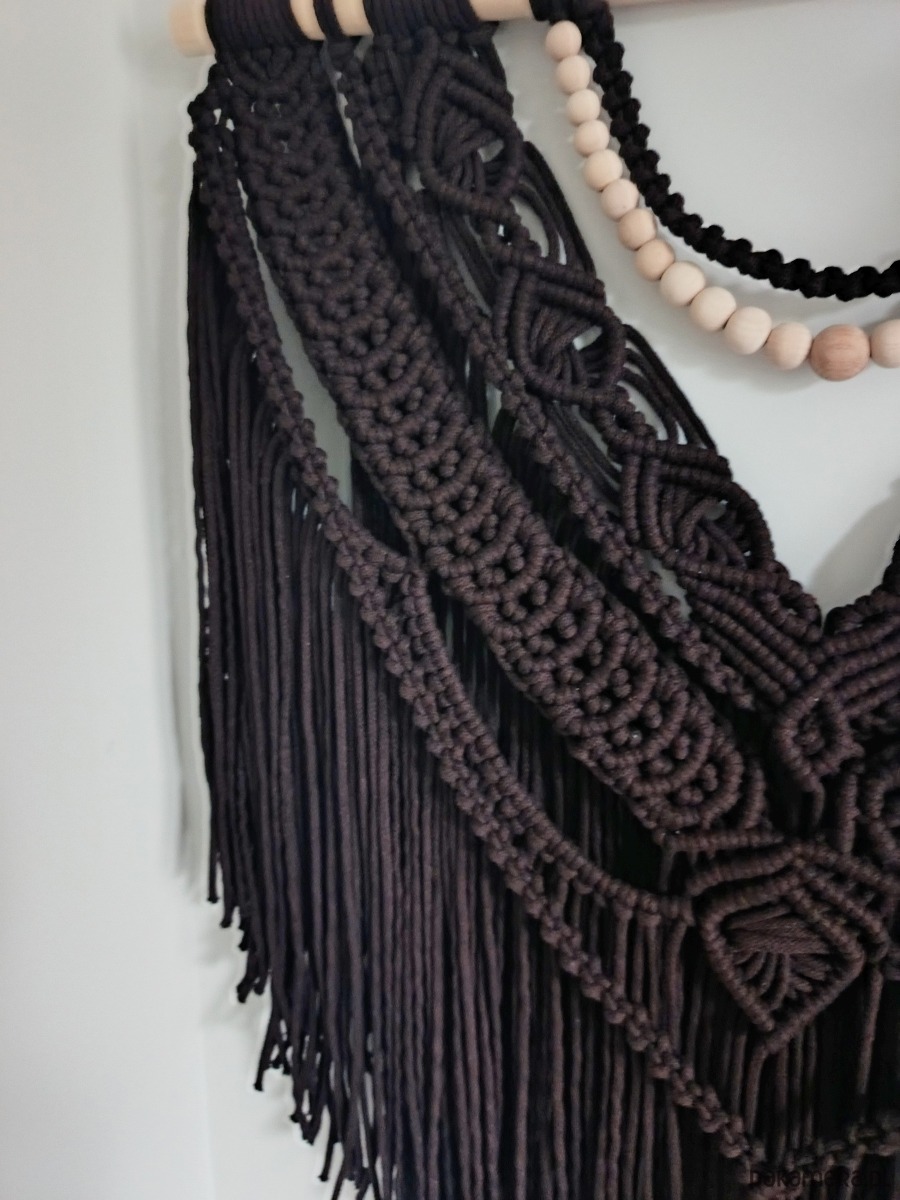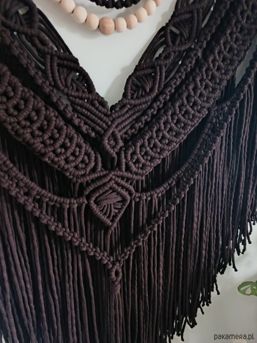 Salsa wykonana jest na naturalnej gałęzi, ze sznurka bawełnianego 5 mm w kolorze gorzkiej czekolady. Co ważne, rdzeń sznurka jest dokładnie w kolorze sznurka, więc dół makramy jest jednolity kolorystycznie, a co za tym idzie- efekt końcowy jest dużo bardziej estetyczny.