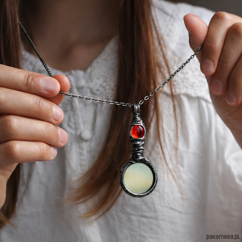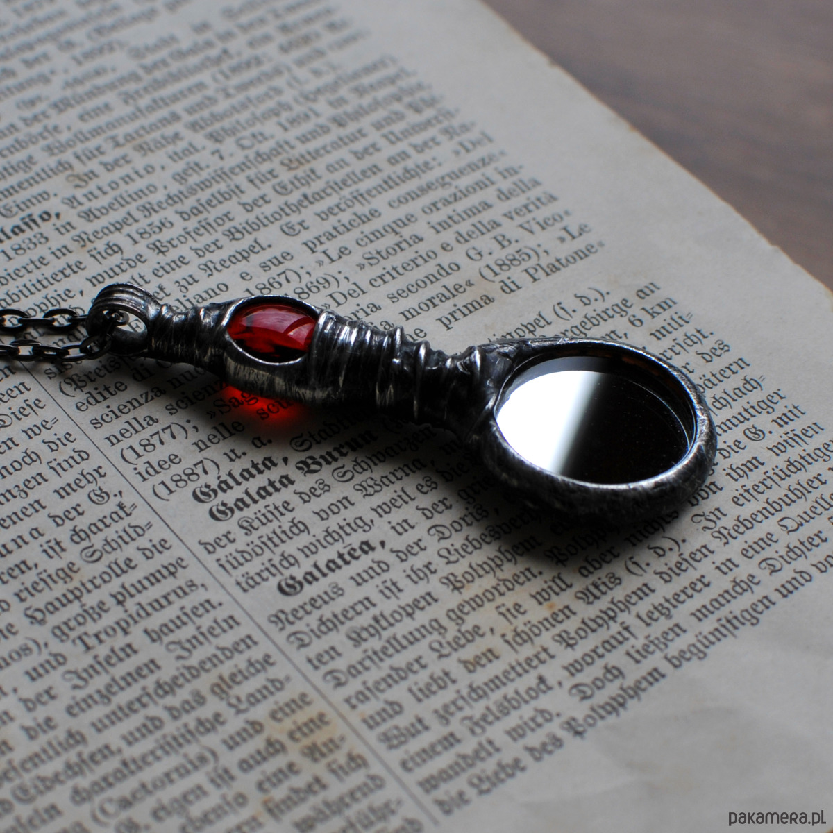 Naszyjnik „Zwierciadło” – z prawdziwym lusterkiem i czerwonym kaboszonem