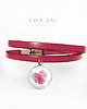 Dwa paseczki w odcieniu amarantowym o szerokości 5 mm pięknie układają się na nadgarstku. Zapięcie i cherms ze stali nierdzewnej. Idealna na nadgarstek 15 - 16 cm. Istnieje możliwość zamówienia bransoletki na dowolny rozmiar. Wystarczy po dokonaniu zamówienia napisać wiadomość i podać obwód własnego nadgarstka ciasno zmierzonego.