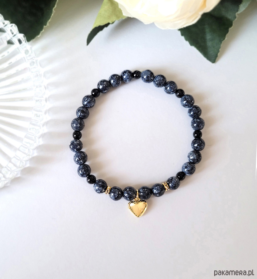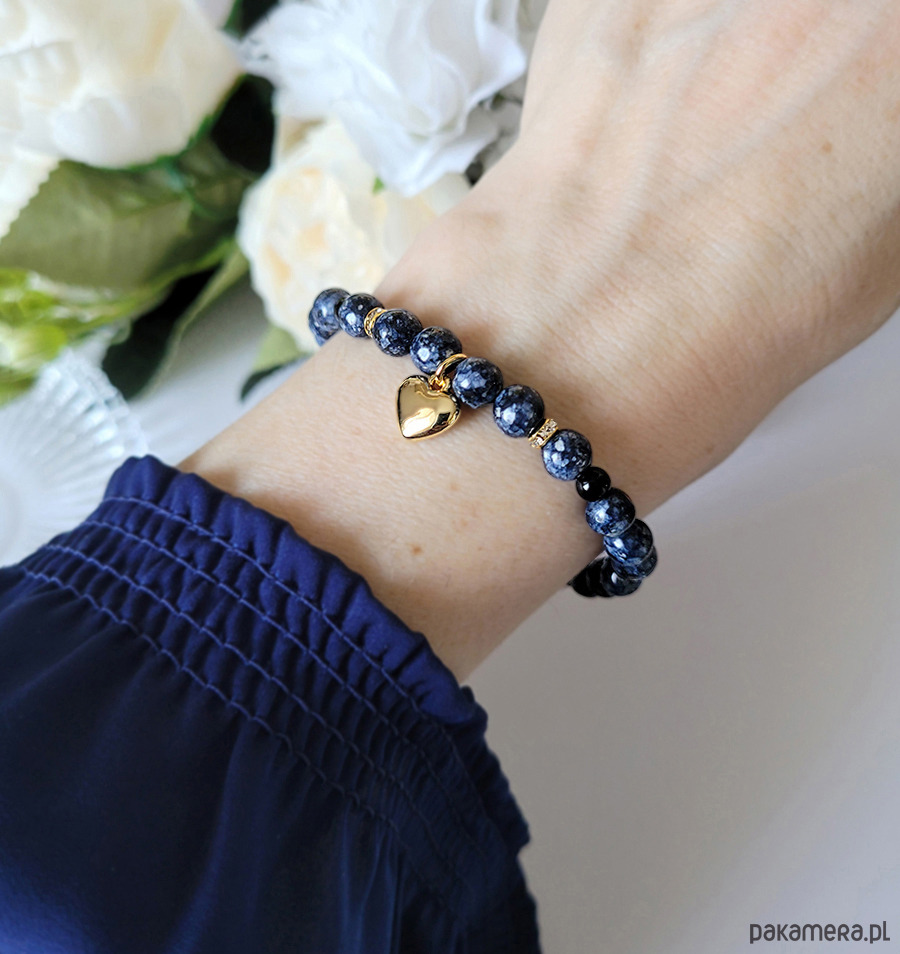 Piękna elegancka bransoletka zrobiona z kamieni naturalnych: Sodalitu i Onyksu.