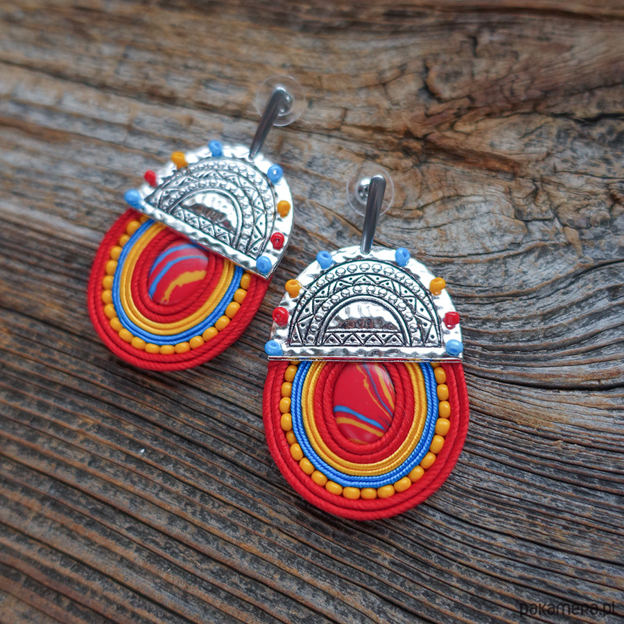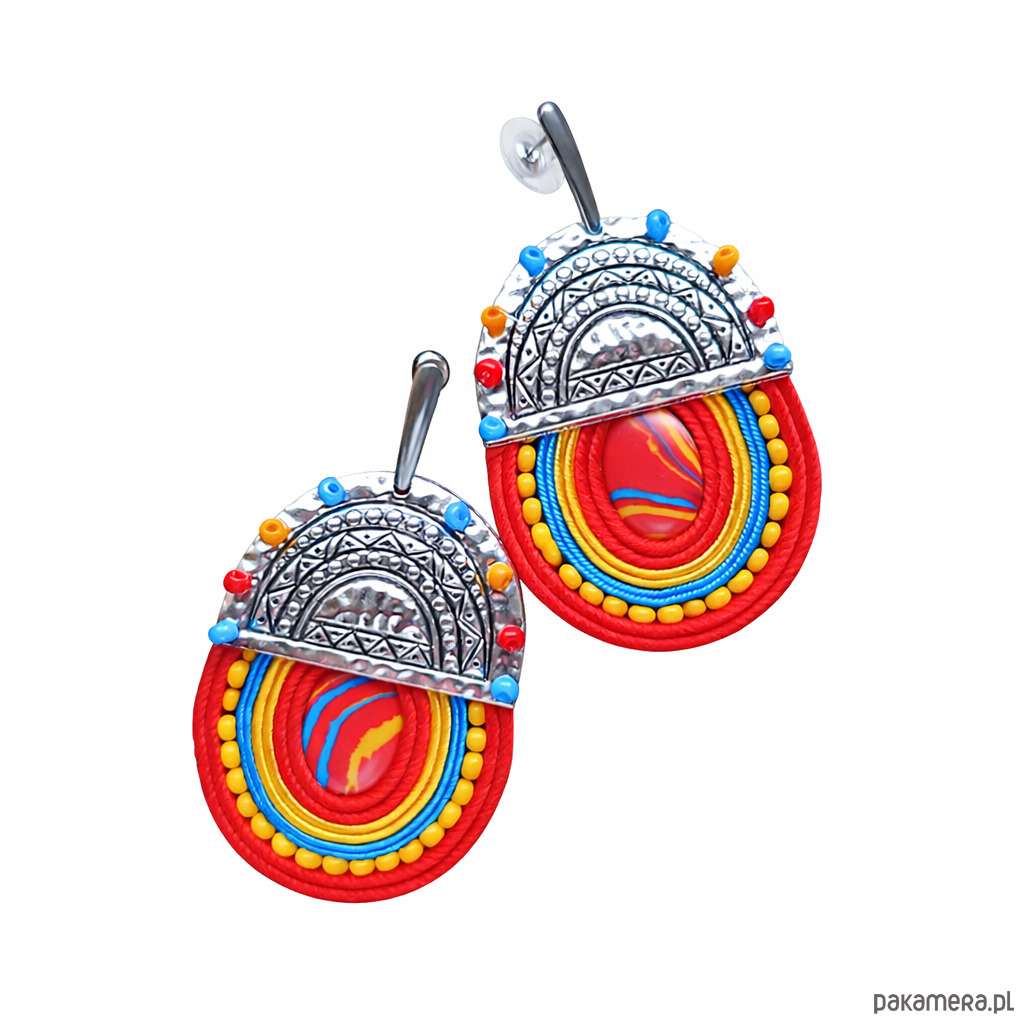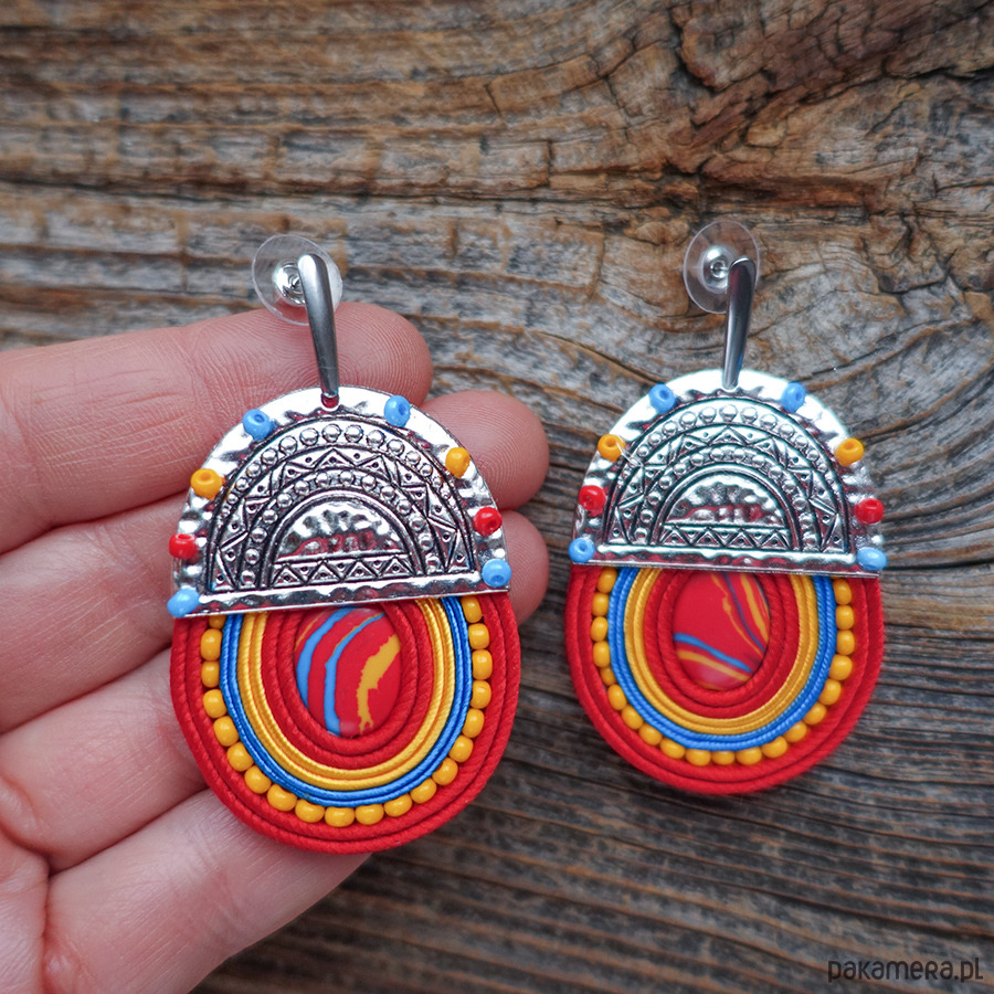 Kolczyki zostały wykonane ręcznie techniką haftu soutache, z dbałością o każdy detal i precyzyjne wykończenie. Idealne na lato, festiwal, wakacyjny wyjazd, ale też jako mocny akcent do prostej stylizacji.