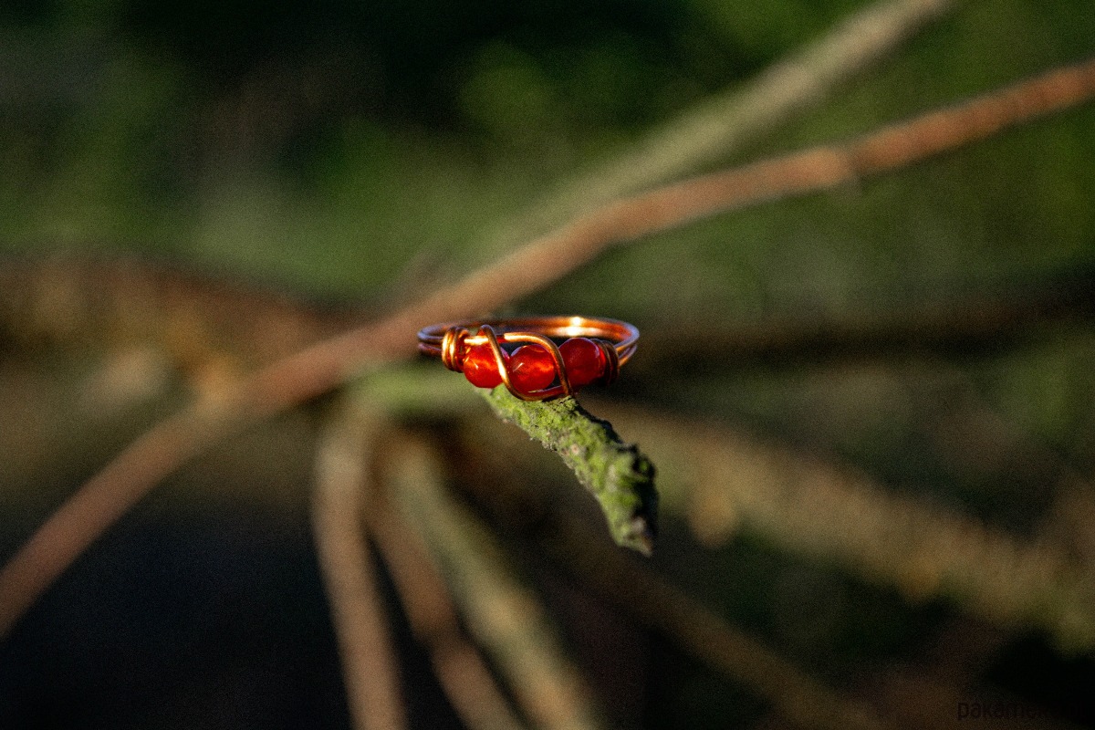 Miedziany pierścionek z karneolem.
